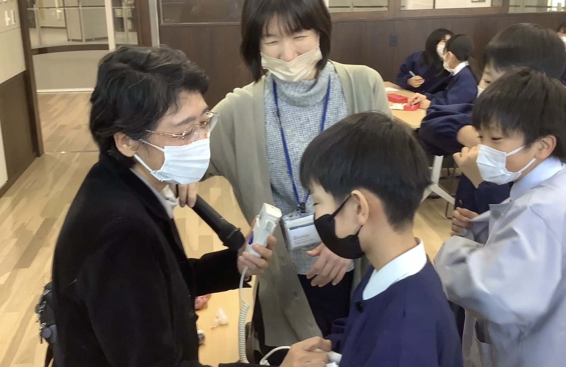 始めに、みなさんが今生きていることは奇跡であり、数えきれないくらいたくさんの方々がいのちを繋いでくれたからといったお話がありました。そして、お母さんのお腹の中で赤ちゃんが成長していく様子や、出産の様子をパネルや人形、動画で学びました。また、妊娠中はお腹が大きくなることに幸せを感じながら出産を心待ちにしていること、誕生の瞬間にはみんなが幸せな気持ちになること、妊娠から今に至るまで、たくさんの人に愛情を注がれ育てられてきたことを学びました。