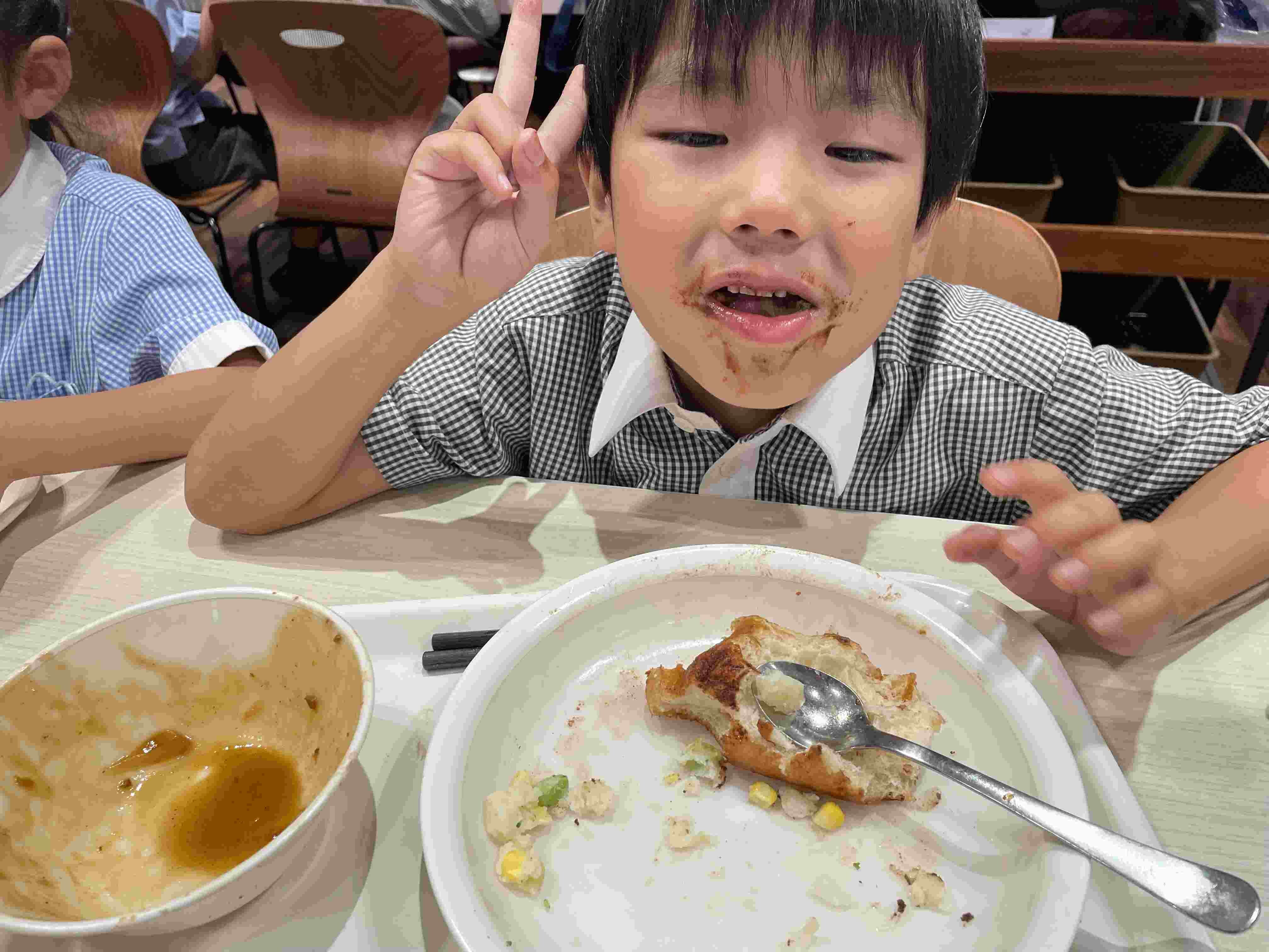 10月1日の給食は、1年生も大好きな「揚げパン」でした。1学期に、給食を残さず食べる「ぱくぱくちゃれんじ」に取り組んだ1年生ですが、体も少しずつ大きくなり、食べる量が増えている子供たちです。大好きな「揚げパン」を口いっぱい頬張って、おいしくいただきました。