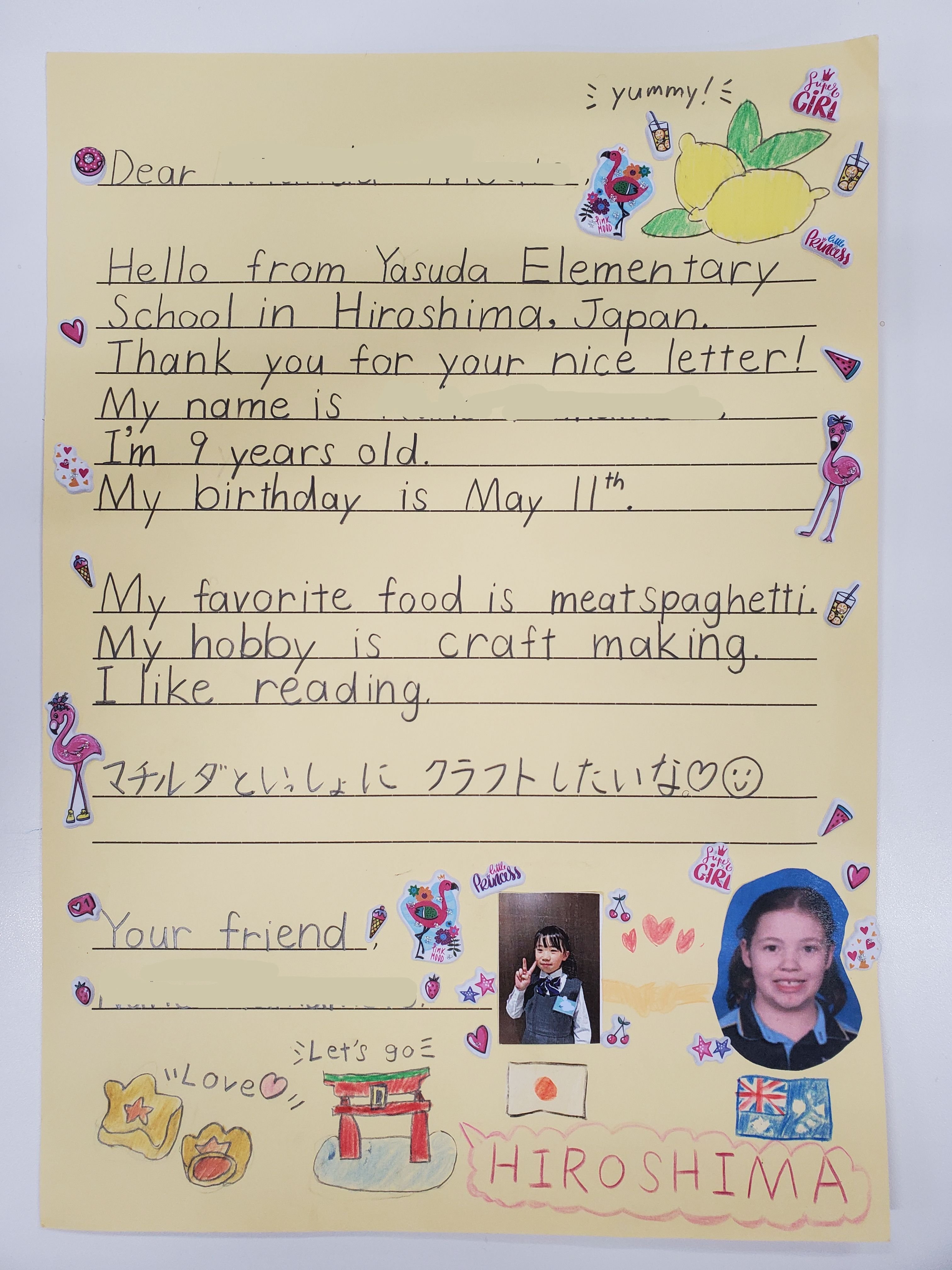 Grade 3s and 4s received Japanese letters from their friends at Redeemer and wrote English letters in reply.