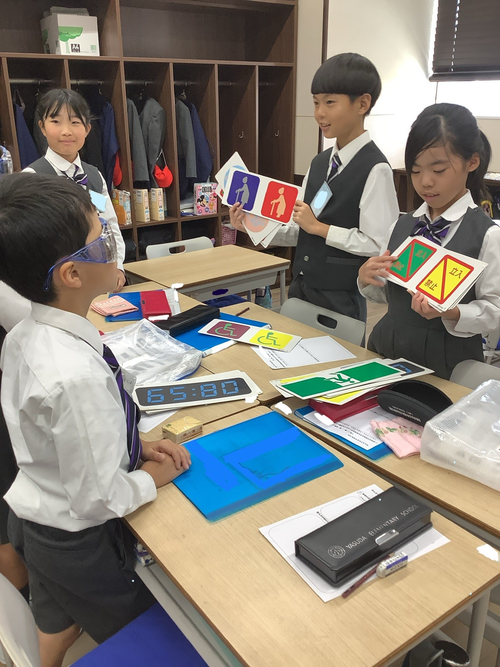 くすのきで「みんなで支えあおう」という学習をしています。「まちの中のバリアフリーに関心をもち、目の不自由な方の生活について理解を深める」「困っている人に出会ったとき、自分にはどのようなことができるか考える」などのことを中心に社会福祉について学んでいます。