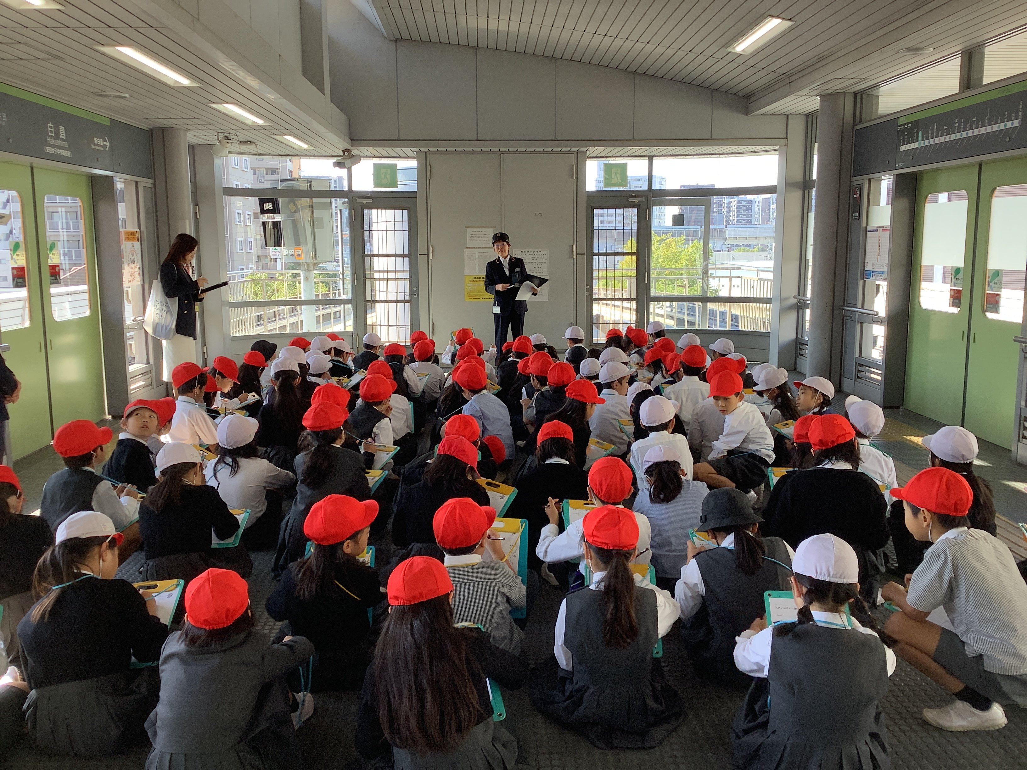 2回の探検のあとには、アストラムライン白島駅や広島ホームテレビを見学し、校長先生から被爆桜や工兵橋の歴史についてもお話を聞きました。
