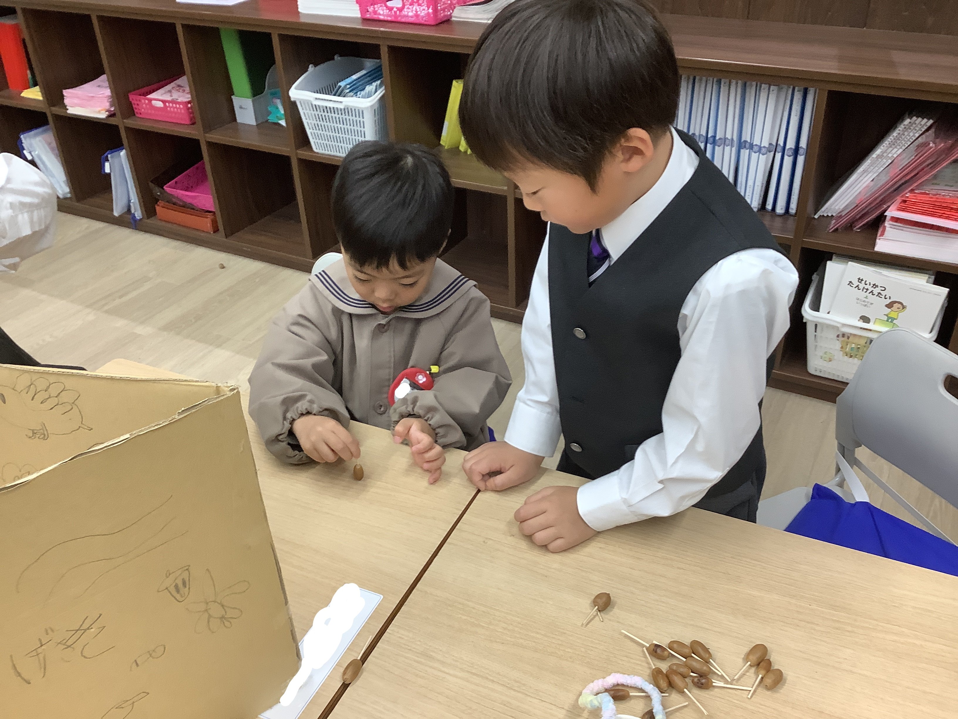 この経験を活かし、四季の自然をいかした遊びに積極的に取り組むだけでなく、来年度以降入学してくる年下の子にも優しく関われるようになっていくことを期待しています。