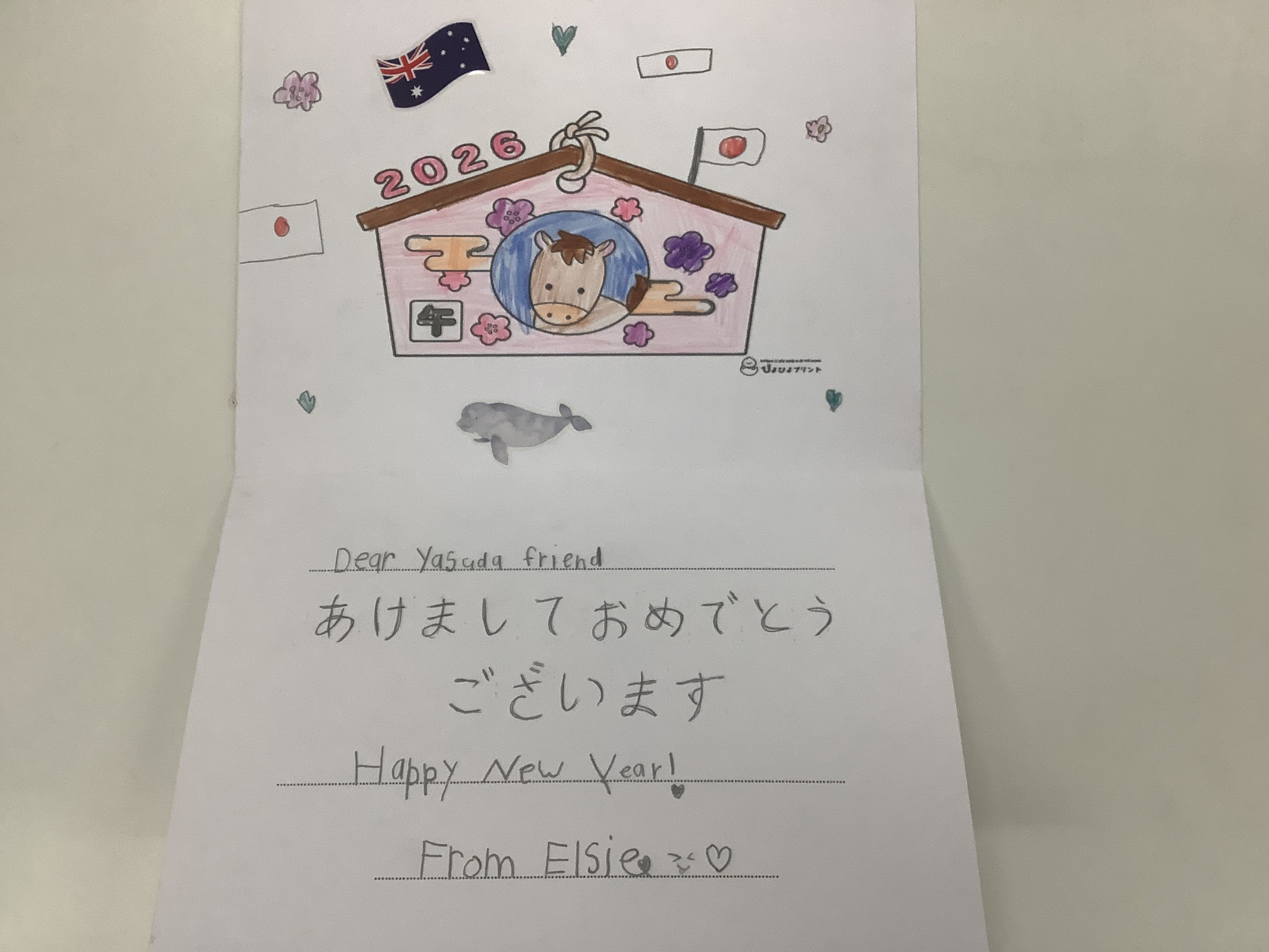 3学期にはお返しにRedeemerの児童から日本式の年賀状が届きました。ひらがなもきれいにかいてありました。