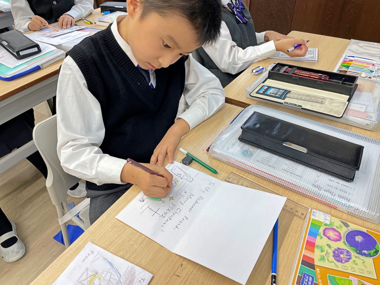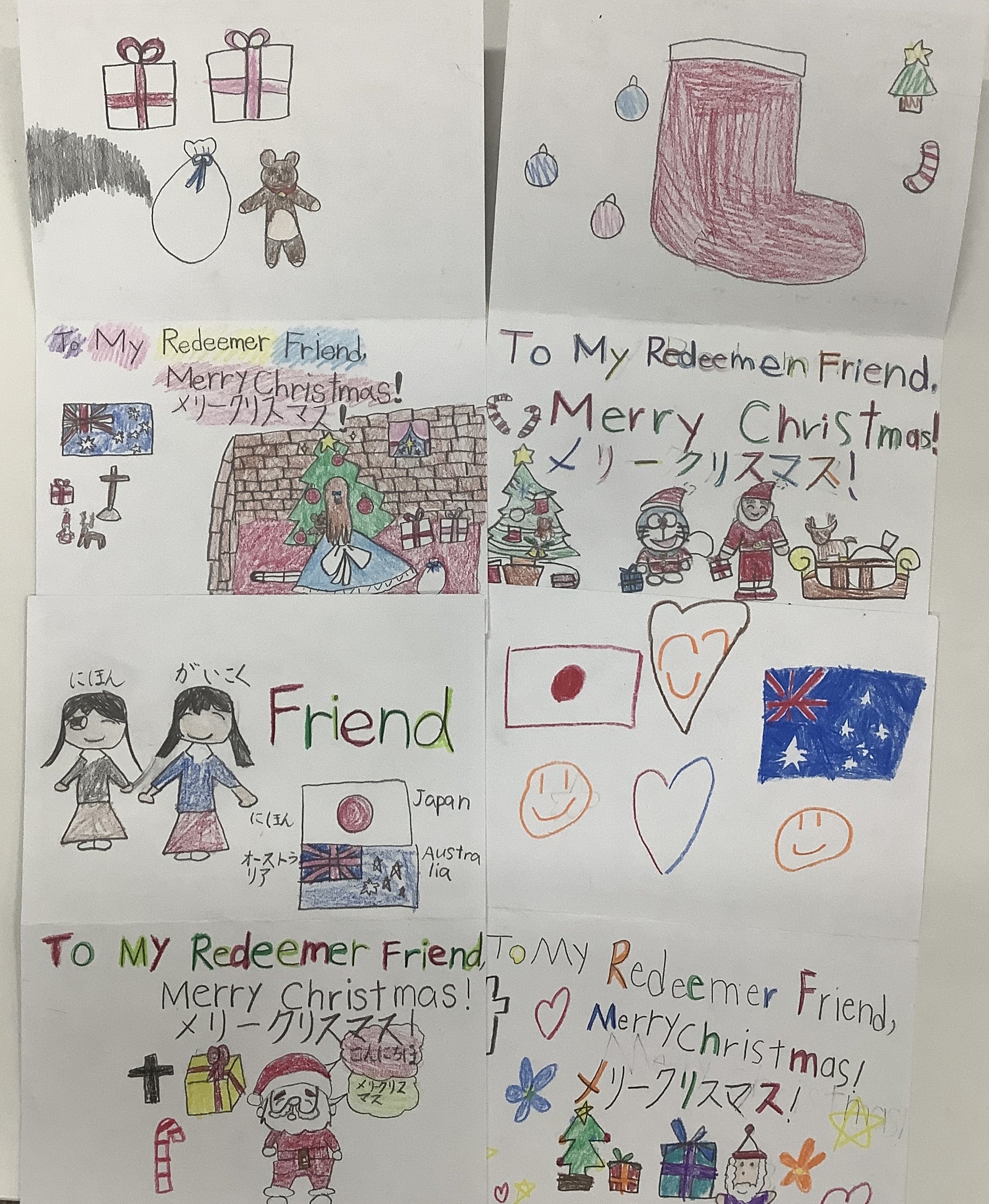 2年生は2学期にオーストラリアの姉妹校、Redeemer 小学校の児童にクリスマスカードを書いて送りました。