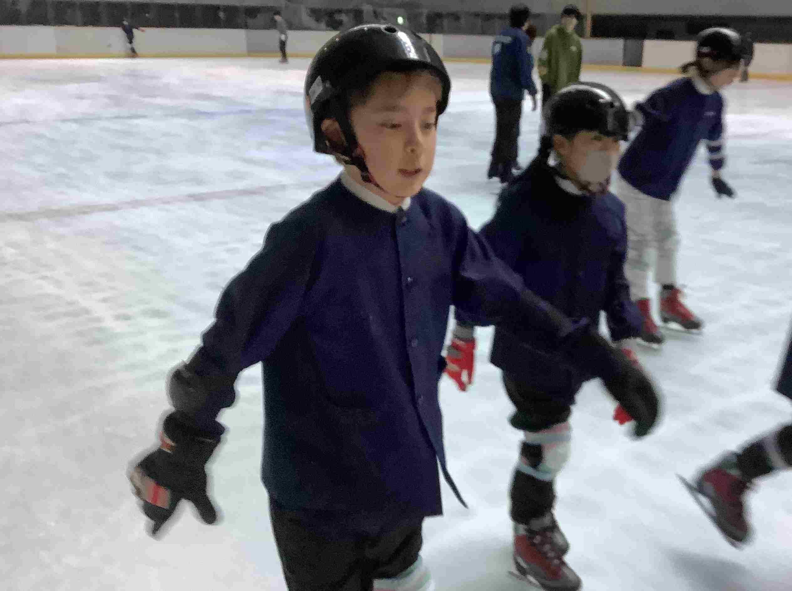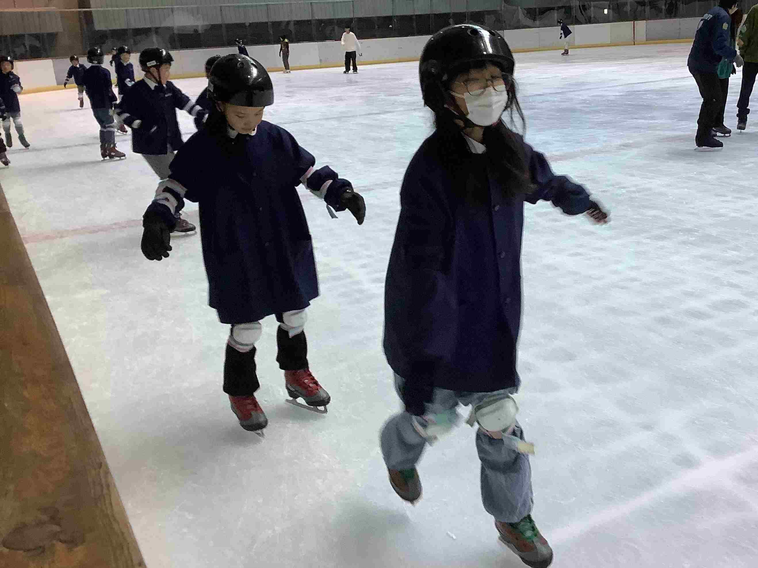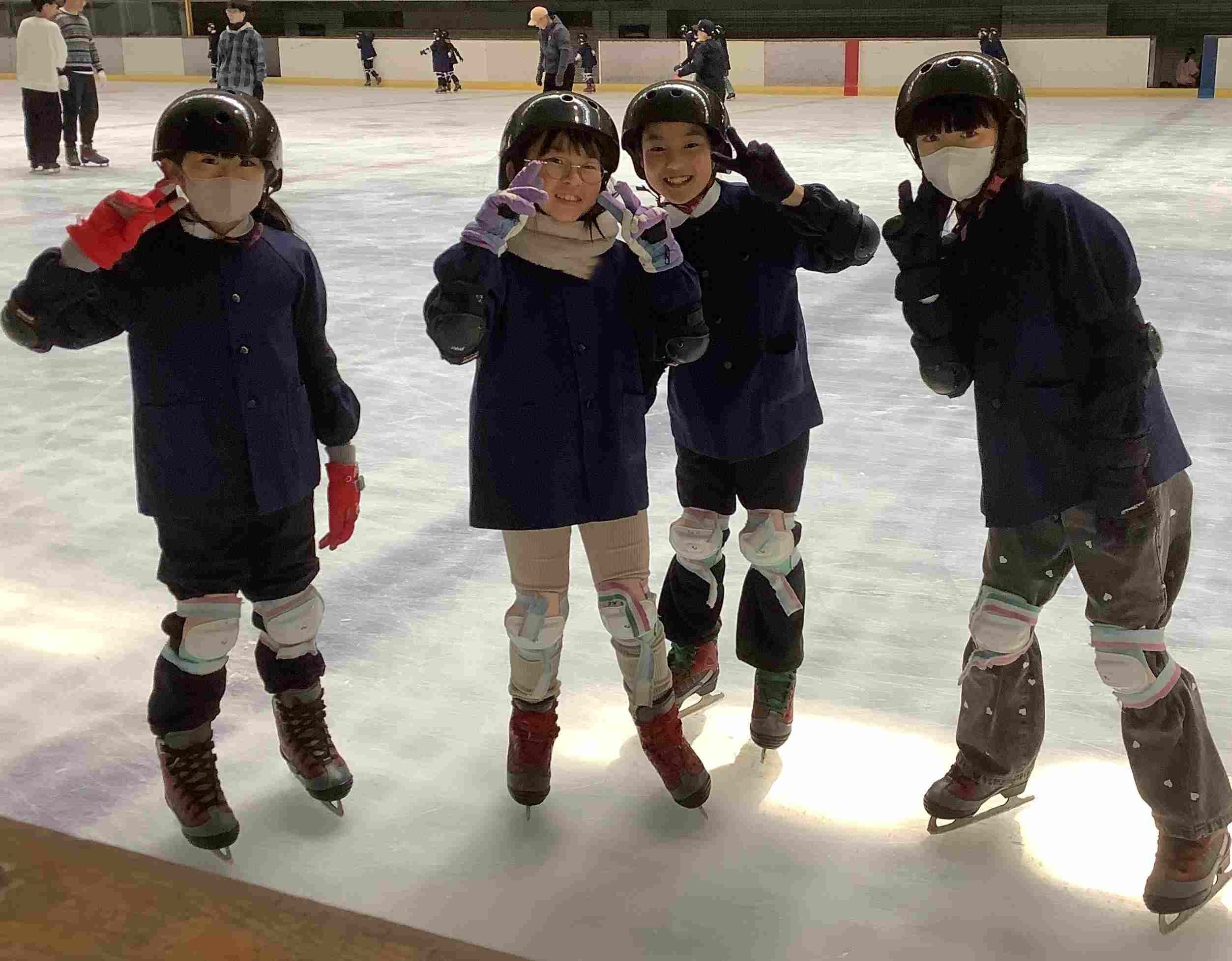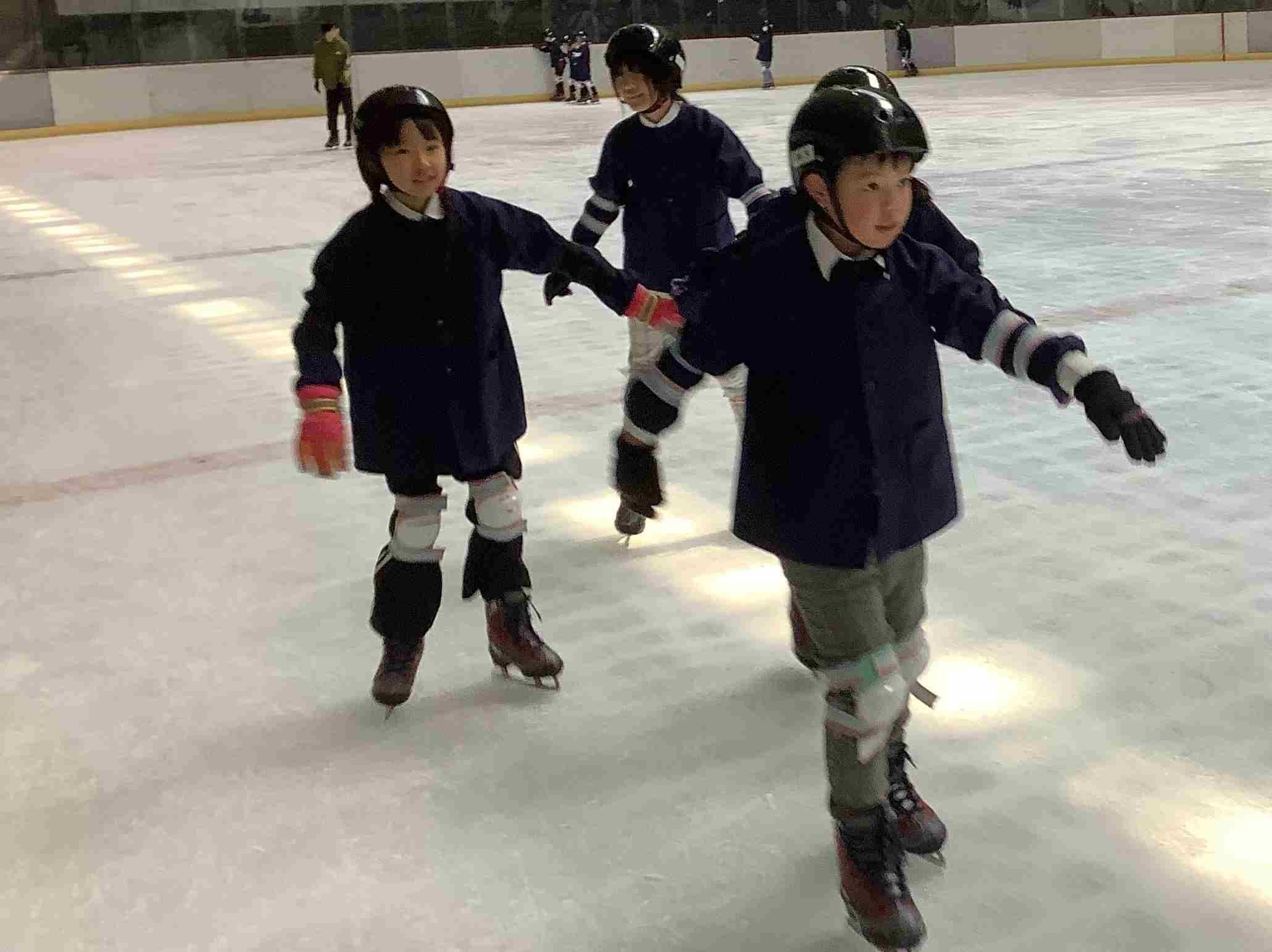 1月30日(金)に「ひろしんビッグウェーブ」にて、4年生のスケート教室を行いました。子どもたちは事前指導の時から、とても楽しみにしていました。施設の方から説明を受け、保護者にご協力いただきながら、プロテクターを装備し、スケート靴を履きました。氷の上にいざ立つと緊張した様子でしたが、徐々に慣れてきたのか笑顔でスケートを楽しむ姿が多く見られました。寒い時期のスポーツを思う存分楽しむことのできる、よい機会となりました。