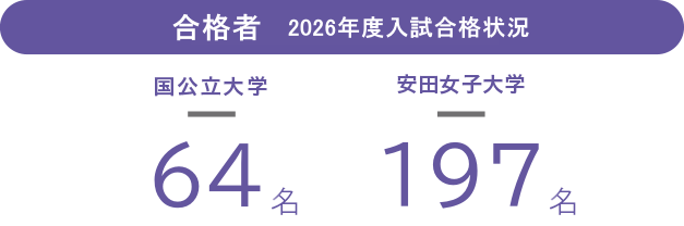 多くの生徒が、望んだ未来へ進んでいます 安田女子中学高等学校で学んだ多くの生徒が、希望校への合格を果たしています。自分が描いた将来像を実現するために、受験のサポートもますます強化していきます。 合格状況(PDF)