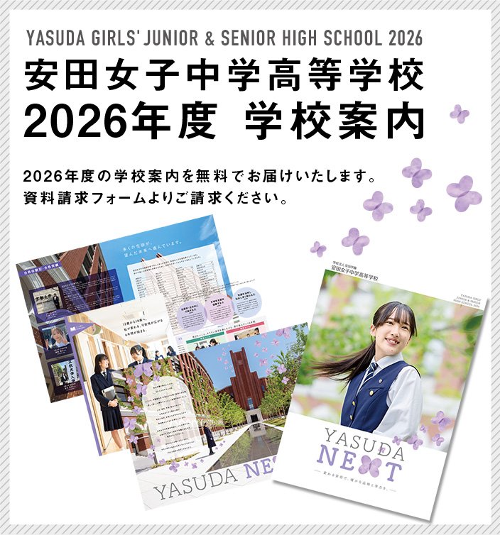 入試情報 トピックス 2026年度 生徒募集要項はこちらから [ 入試インフォメーション ] 2025年度 公開行事・説明会一覧を更新しました [ 入試インフォメーション ] バーチャルスクールツアー [ 入試インフォメーション ] 安田女子中学校 特進コース紹介動画はこちらから [ 入試インフォメーション ] 安田女子中学校 総合コース紹介動画はこちらから [ 入試インフォメーション ] 安田女子中学高等学校 施設紹介movie!配信中 [ 入試インフォメーション ]