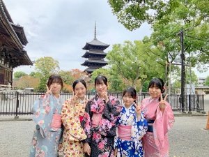 研修旅行では着物を着て京都の町を散策します。