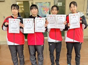 また、11月8日~9日には個人対抗戦が開催され、女子シングルスにおいて山下梢さんが1位、寺嶋柚希さんが3位、女子ダブルスにおいて山下梢・武田朱莉組が1位、谷本乙帆・寺嶋柚希組が5位に入賞し、シングルスの山下さん、ダブルスの山下さんと武田さんが全国高等学校選抜バドミントン大会中国地区予選会に出場することになりました。