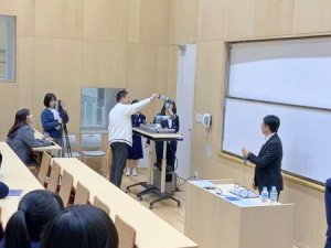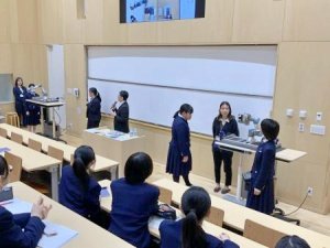 1月15日(木)の総合的な学習の時間に、三光電業様をお招きし、ロボットアームについて説明していただきました。 実際に動く様子も見せていただき、多くの関節が滑らかに連動する動きに、生徒たちは興味深そうに見入っていました。専門的な機械を間近で見る貴重な機会となり、生徒たちの学びの視野が広がったように感じられます。 これから、各々がロボットを考えていきます。どんなアイデアが出るか楽しみです。