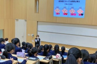 4年家庭基礎の授業で、幟町地域包括支援センターのご協力により不二ビルサービスケア事業部の阿波順子先生をお招きして「認知症サポーター養成講座」を開催しました。認知症の方への支援には高校生にもできることがたくさんあることがわかり、「思いやり」にあふれたやさしい社会の実現に向けて考える良い機会となりました。