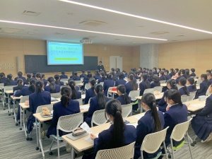 駿台予備学校から講師をお招きし、現在の大学入試の現状や難関大学の魅力、模試の活用法、日頃の学習で意識すべき点など、多岐にわたる内容についてお話しいただきました。