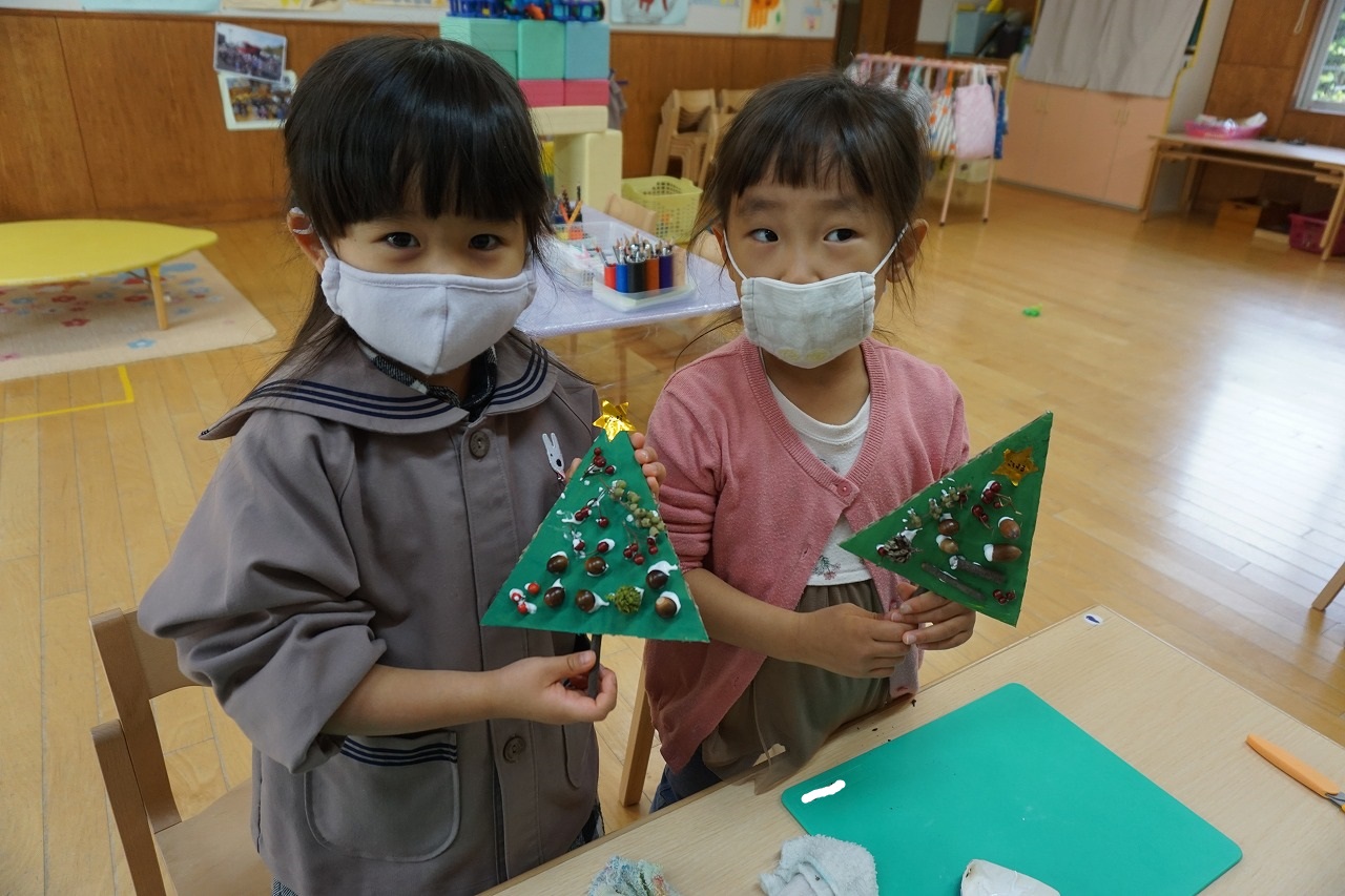 年少組でどんぐりや木の枝を使って何かを作っていました。