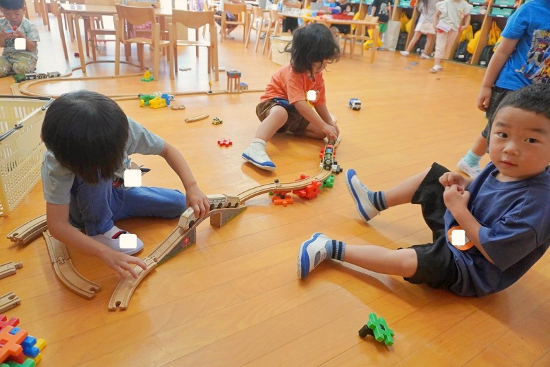 レールを繋げて遊ぶのが好きな子どもたちです(#^.^#)