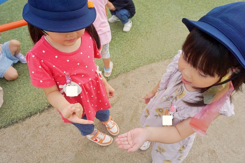 雨が上がったあと、しずく探しに園庭に散歩に行きました(*^^*)
