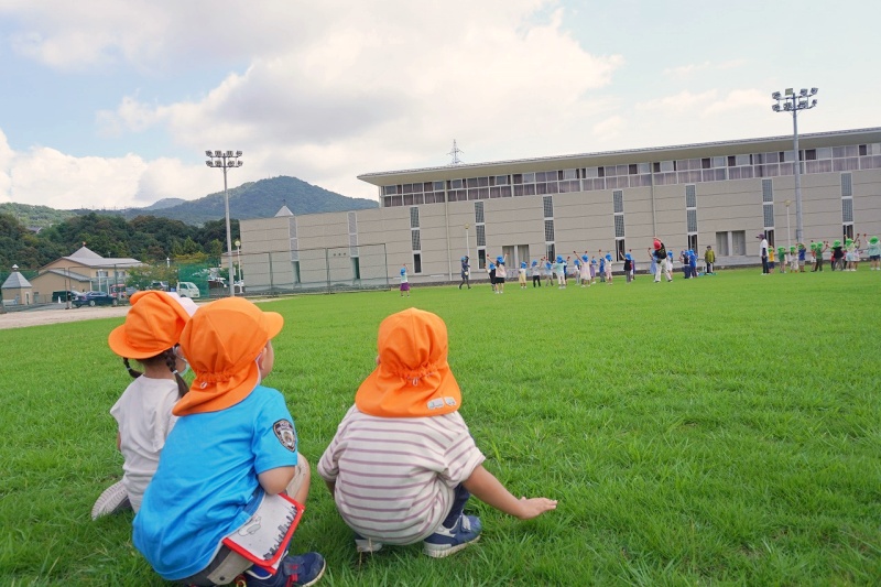 広い芝生に驚きながらも、わくわくした表情の子どもたち♡