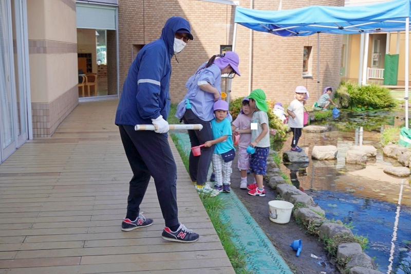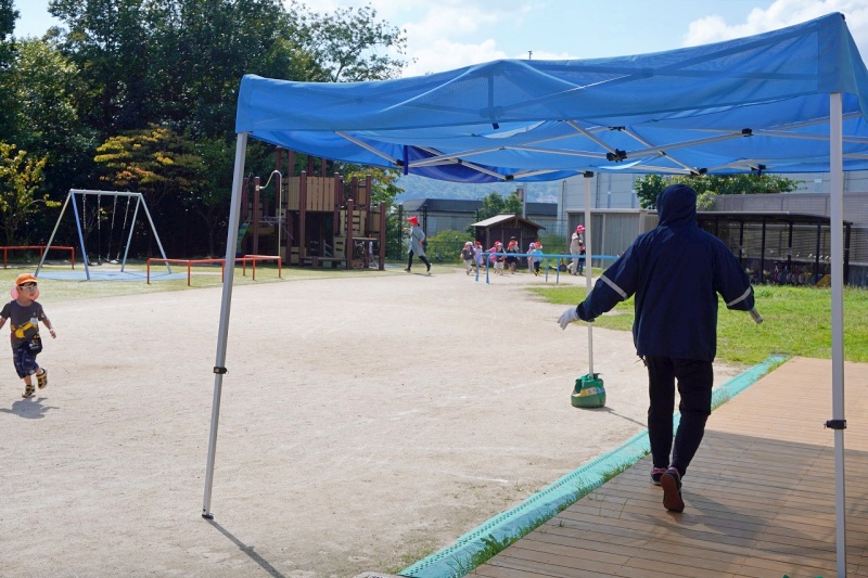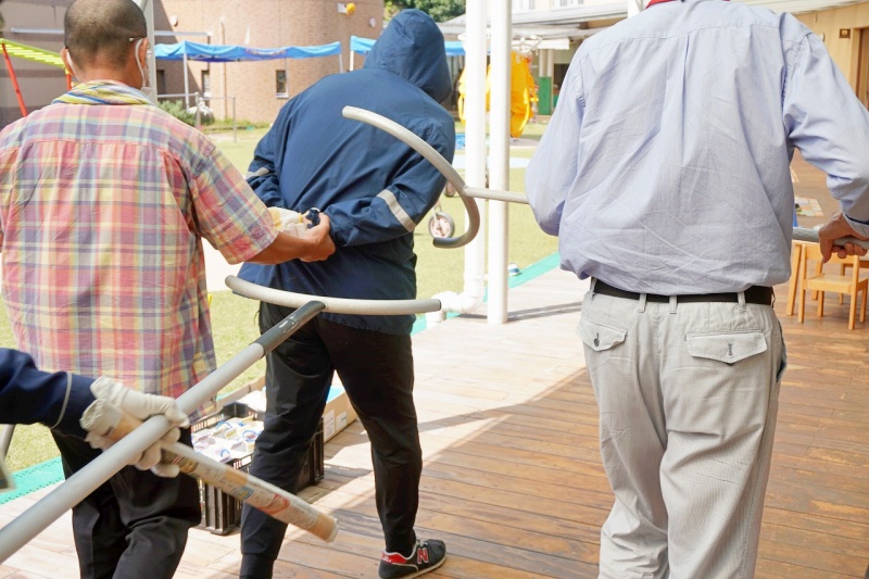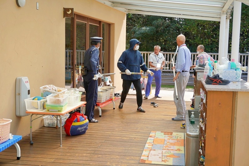 今回は、子ども達が遊んでいる時間に不審者が侵入したことを想定した訓練でした。