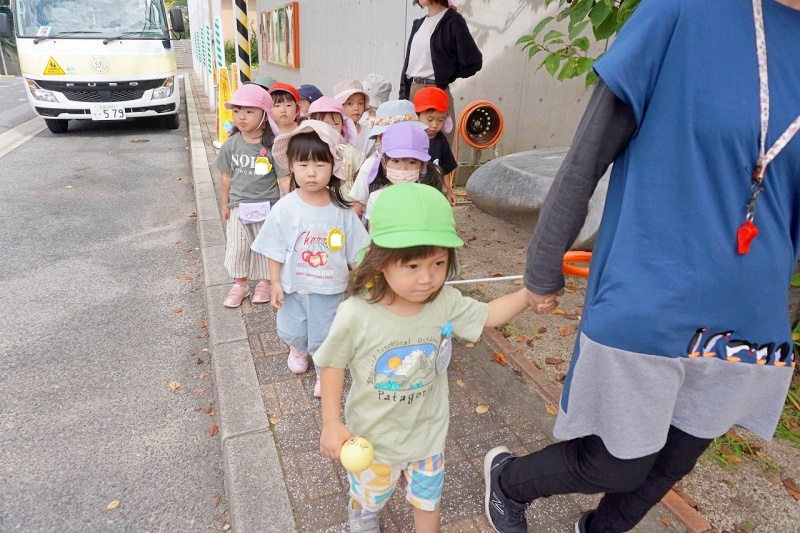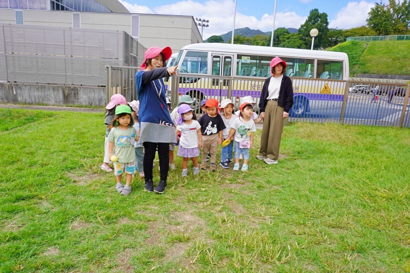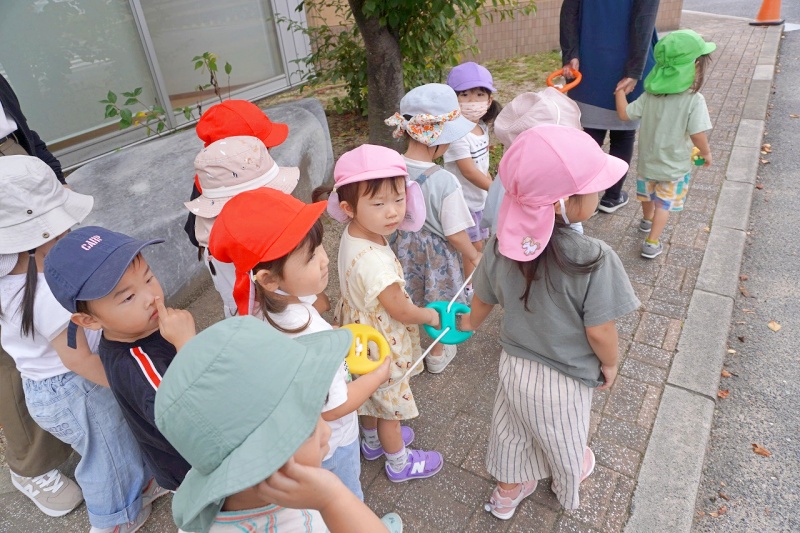 今日、ひよこ組の子ども達は園庭にお散歩に行きました!