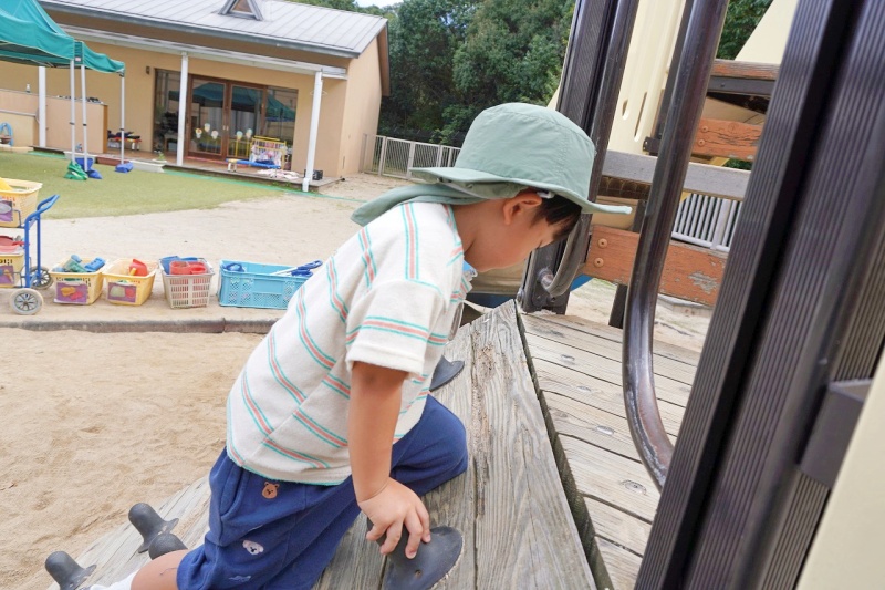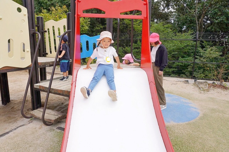 (ビオトープをのぞいて、片足が落ちちゃったお友達もいましたが・・・)園庭でたくさん遊べて楽しかったね♡