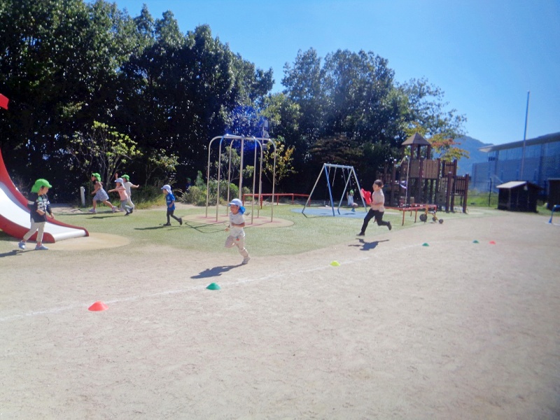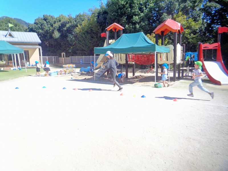一周走るだけで息が上がる先生たち…「もう1回走ろう!!」と子どもたち。