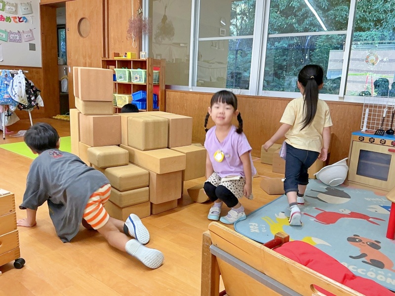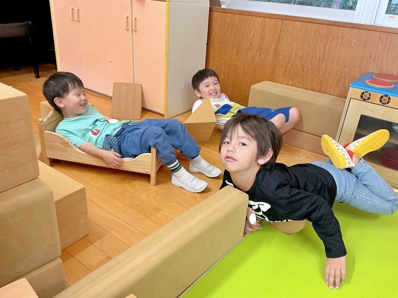 年中組では友達と一緒に楽しいこと、面白いことを見つけたり、だんだん上手になってきたり、初めてできた!を経験したりしています。