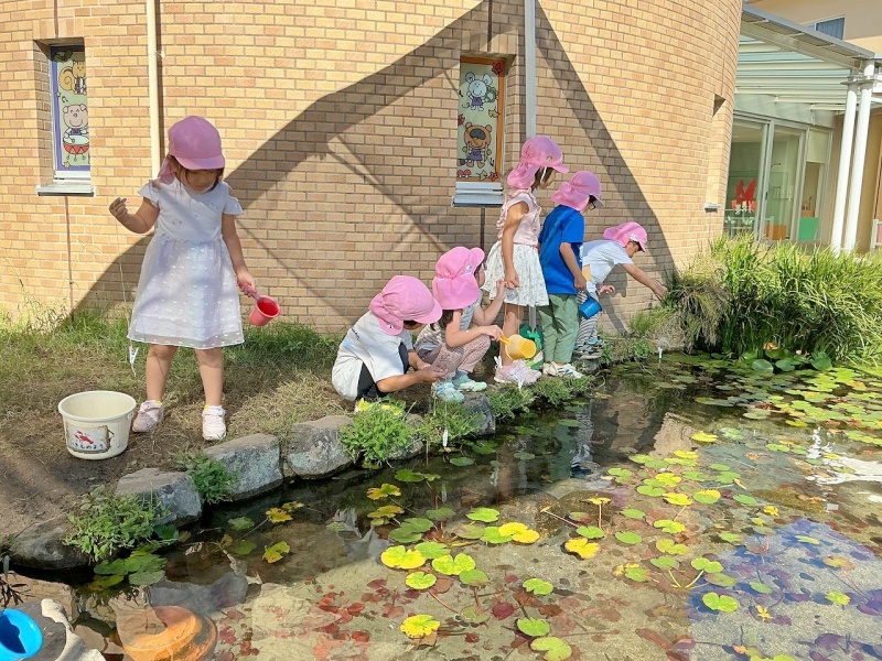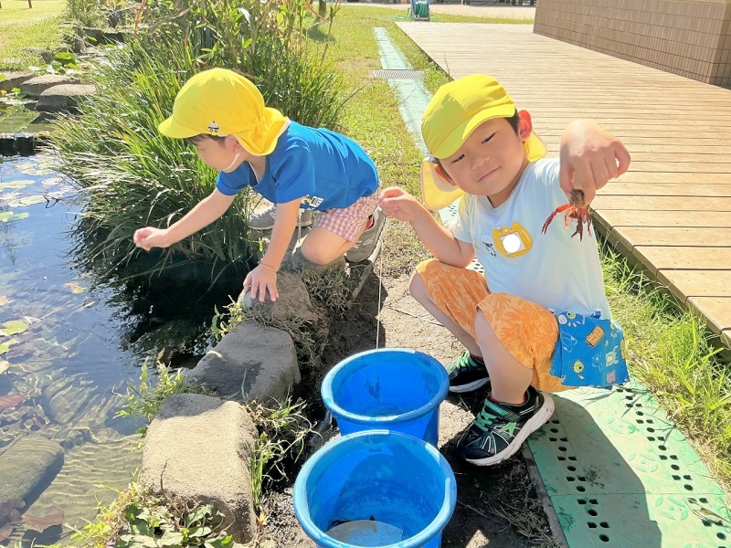 ままごとやサッカー、ザリガニ釣り、うんていなどなど、友達と一緒に楽しんでいます。今日は、そのほんの一部をこっそりお伝えします。