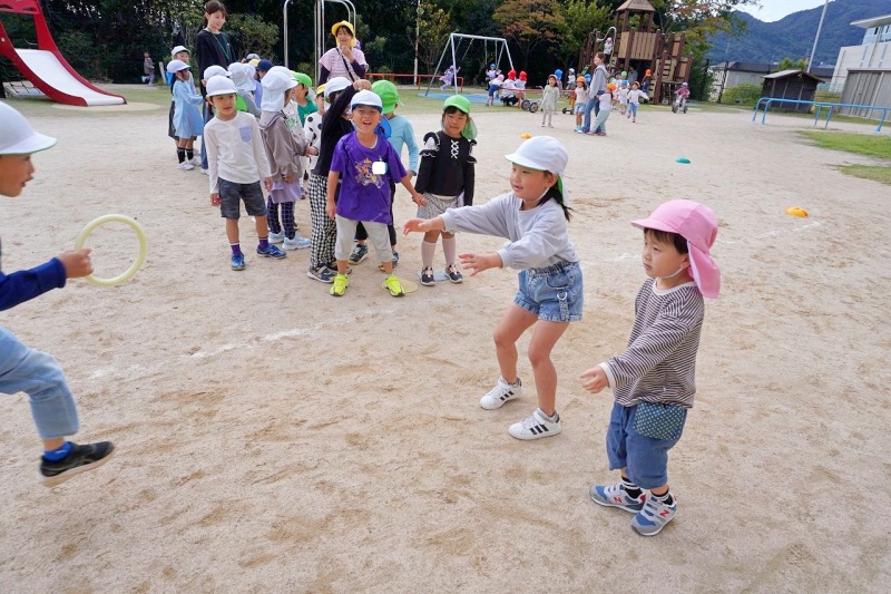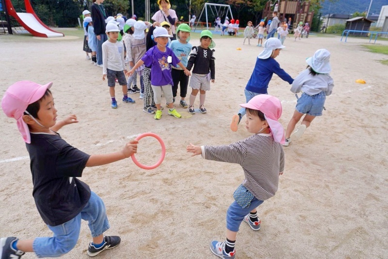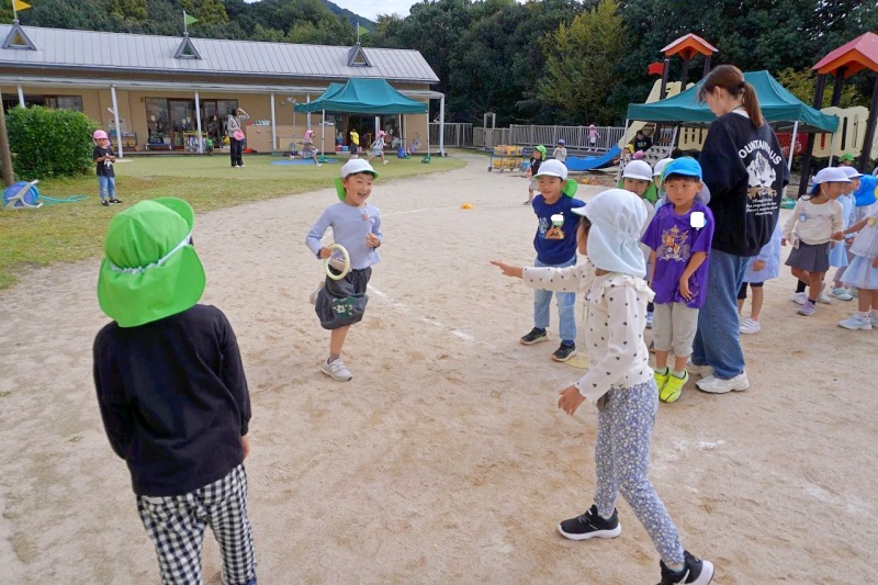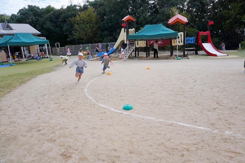 年長児が運動会で走ったリレー!ぼくたちも・・・わたしたちも・・・と、”憧れの気持ち”や”やってみたい!”の気持ちの年中・年少児もリレーに挑戦(^^)