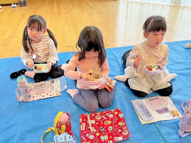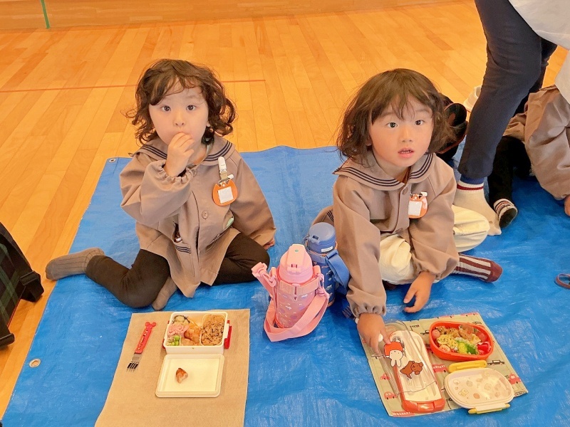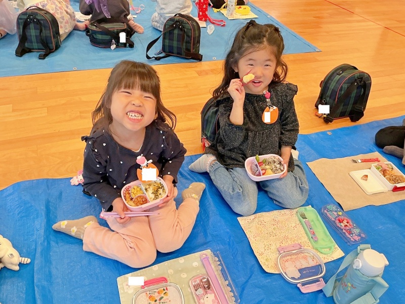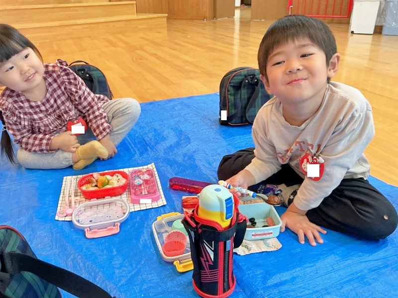 あいにくの雨模様で、遊戯室でのピクニックとなりましたが、初めてのピクニックに大喜び♡