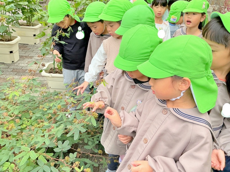 途中、「オジギソウ」を見つけ不思議そうに葉っぱを触っていた子どもたち。