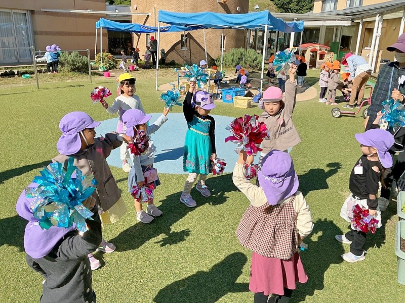 年中組の踊りでは、お姉さんがリードしてくれ、みんなで輪になって踊っていました(#^^#)