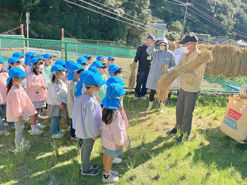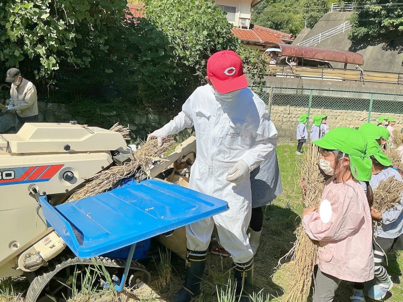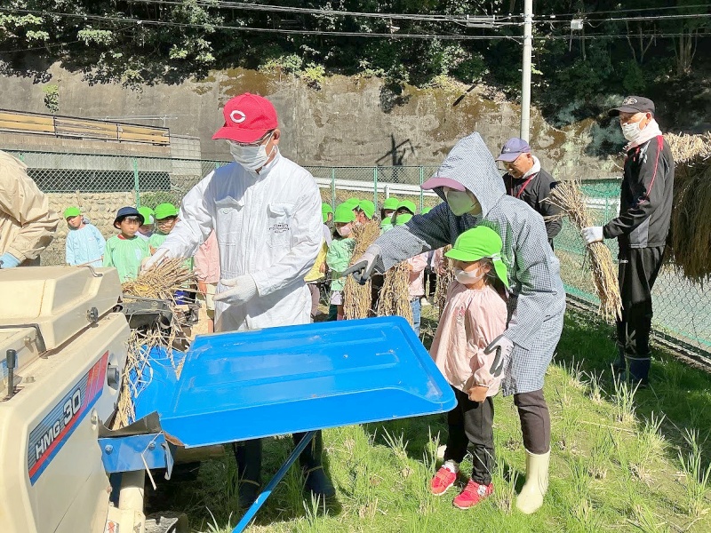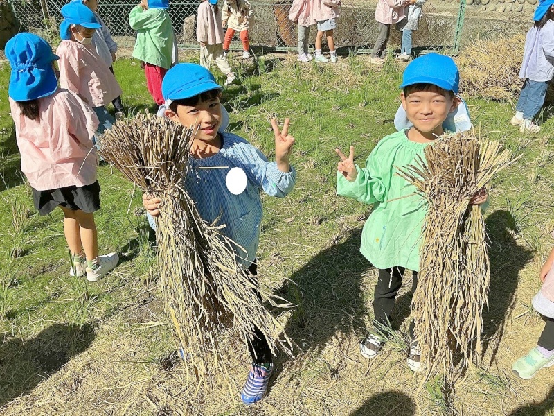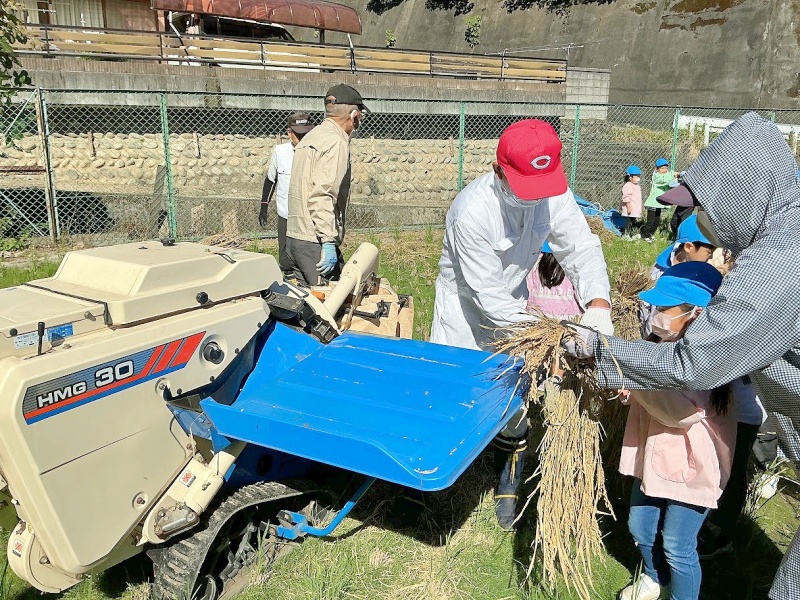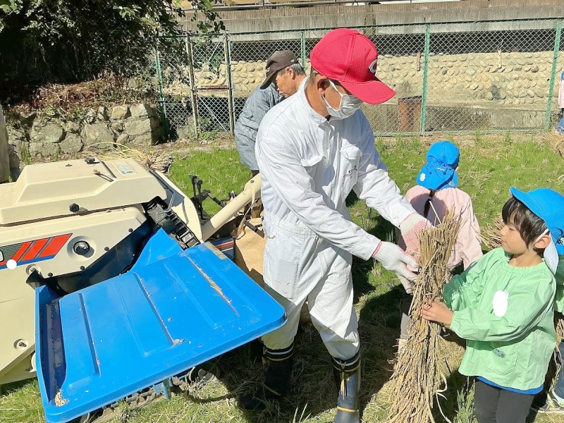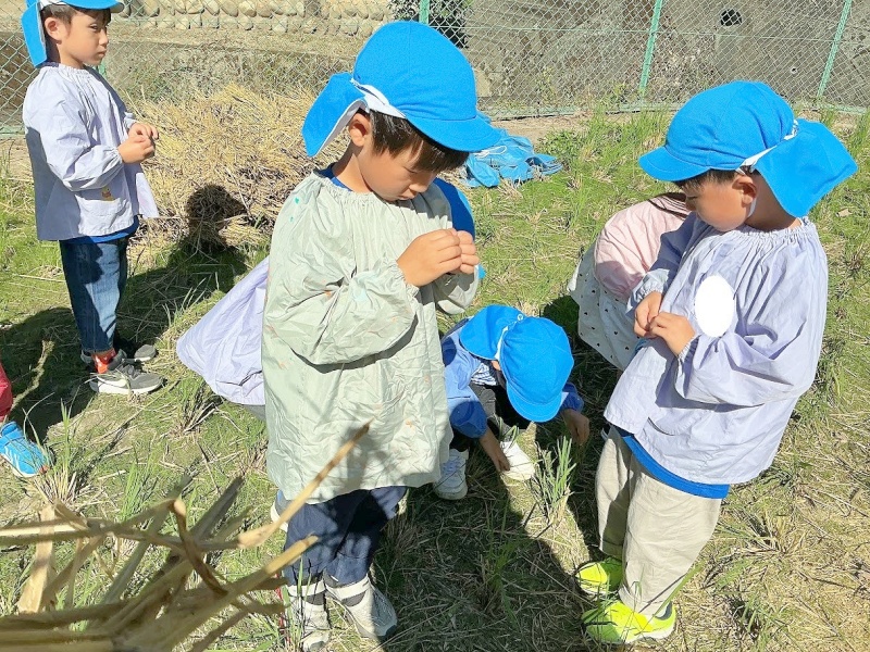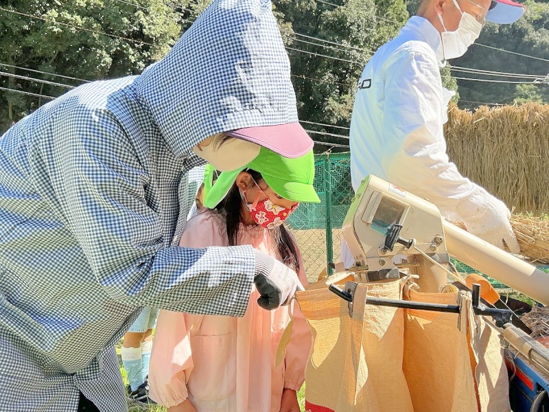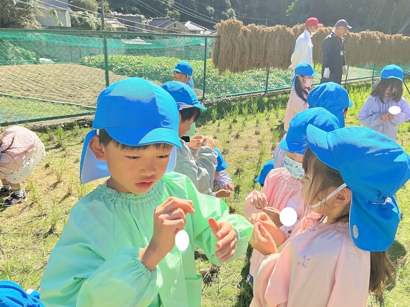 米粒が稲から瞬時に離れていく様子を興味深々に見ていました。