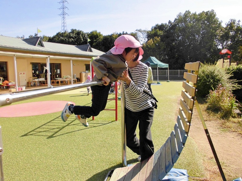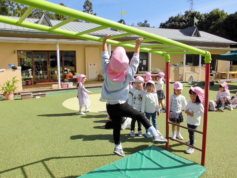 年中組では、うんていや鉄棒に挑戦する人が少しずつ増えてきました。