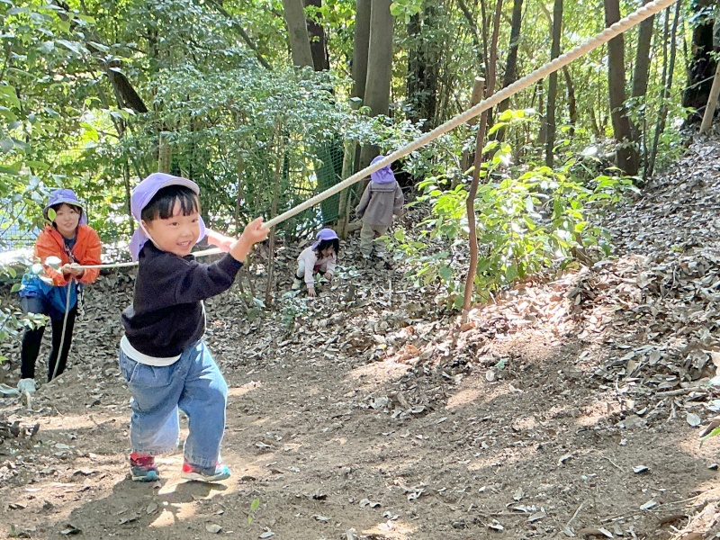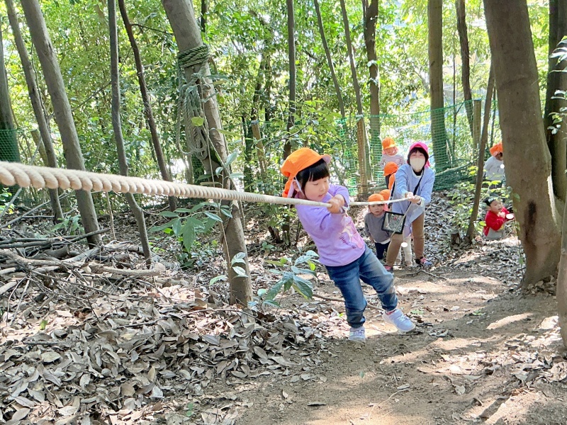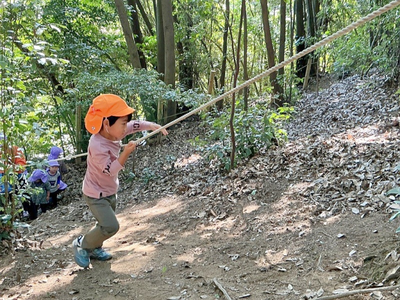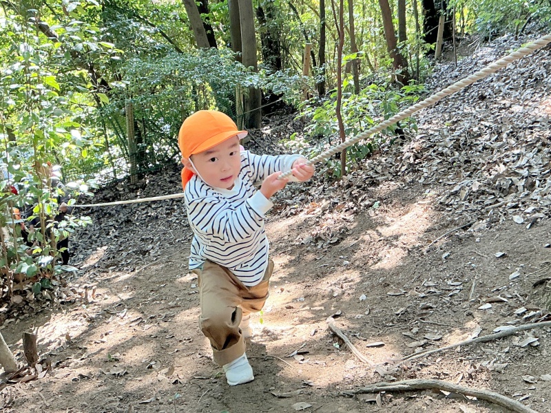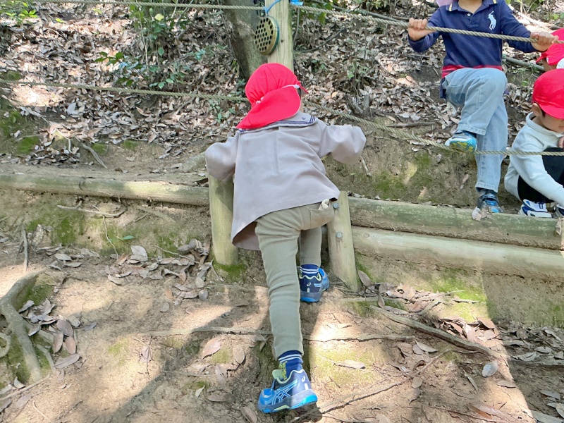 年少組が初めて探索道にあるロープ登りに挑戦しました(^.^)
