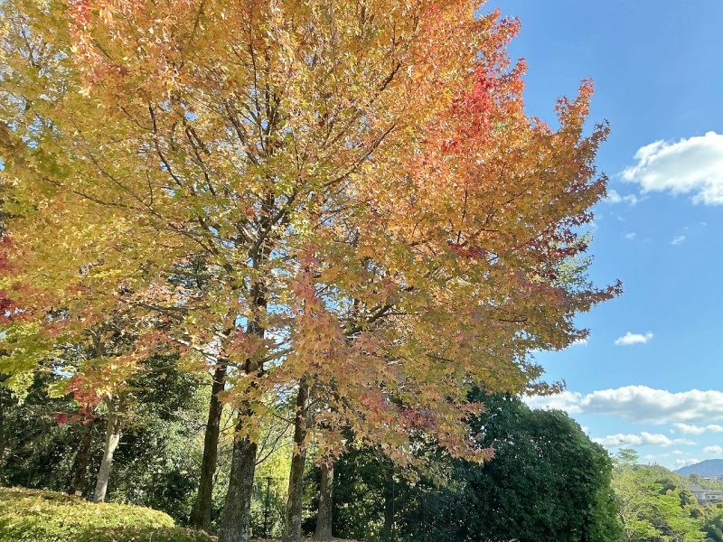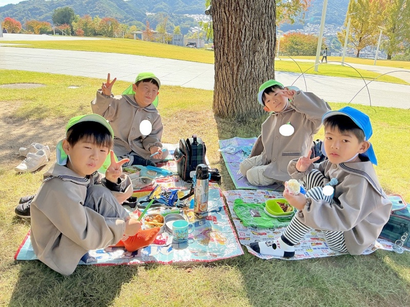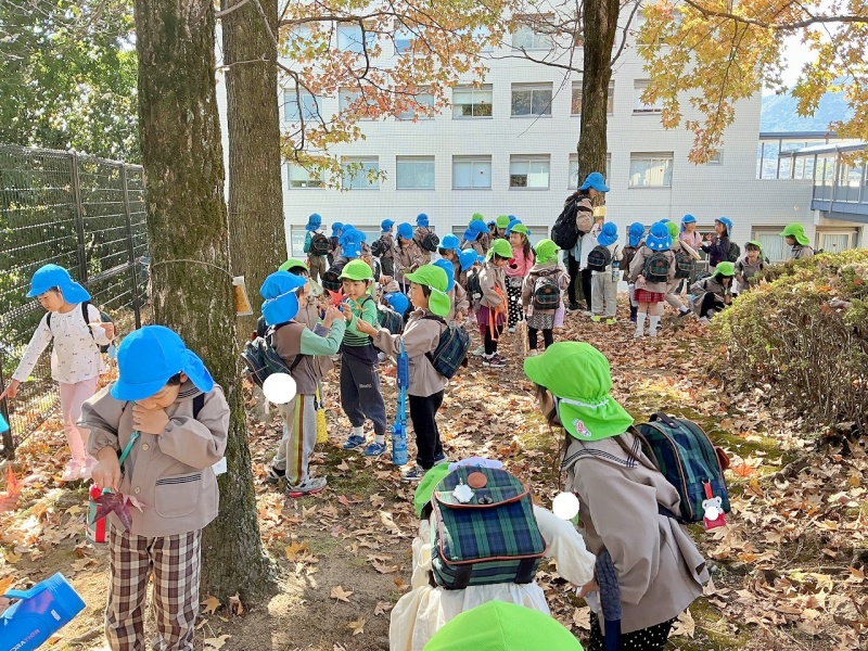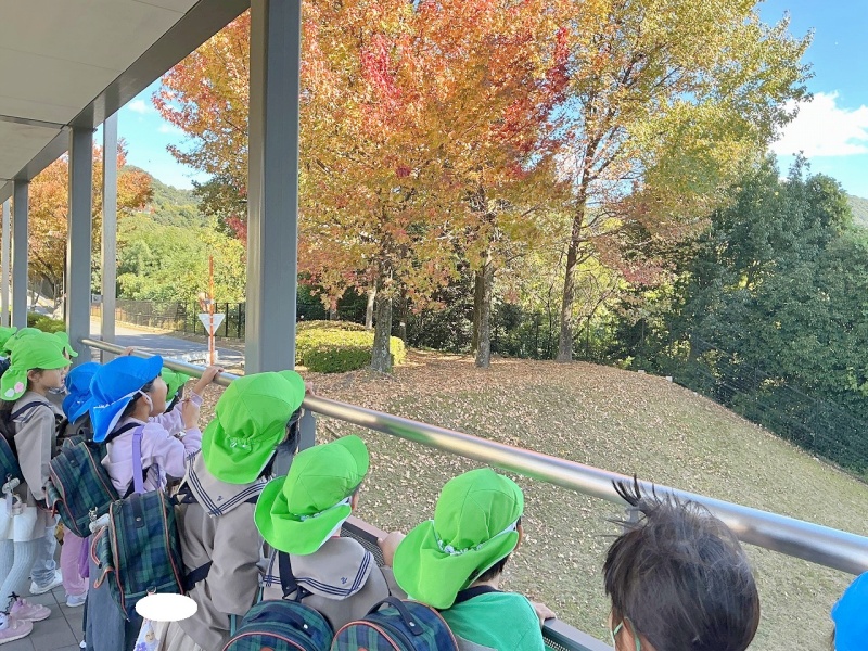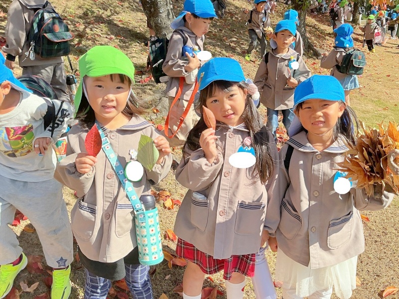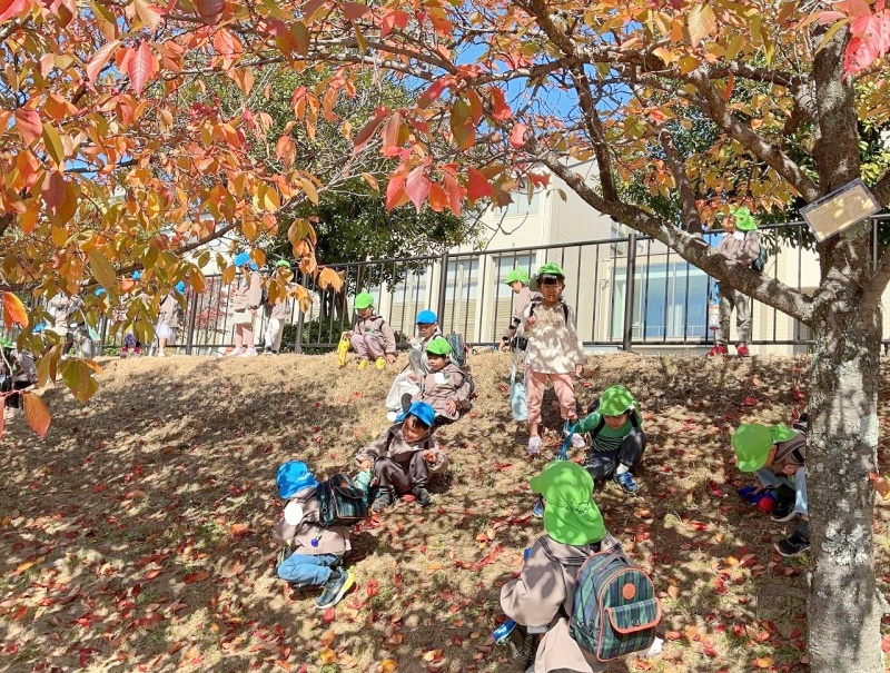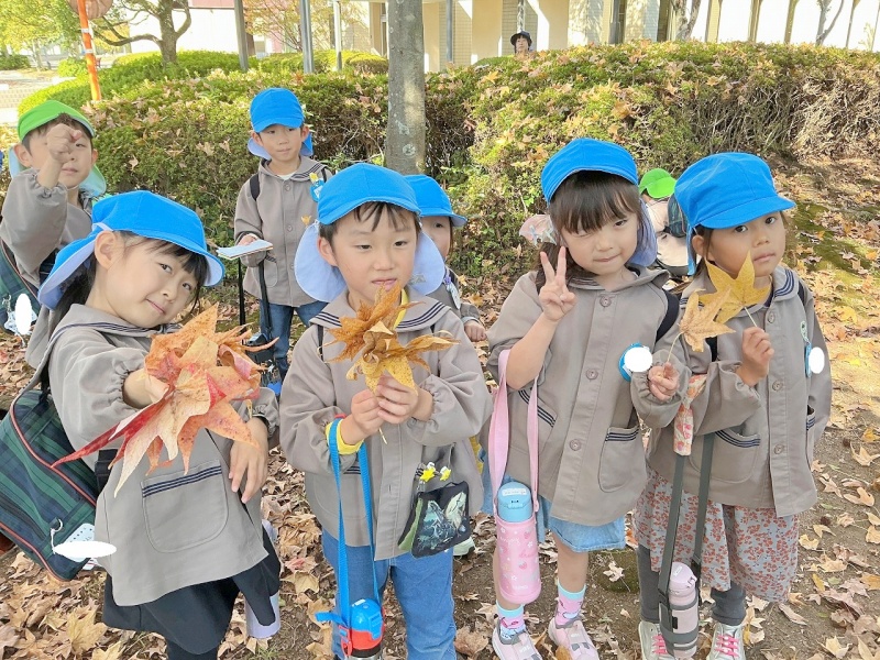 「はっぱがあかい!」「いろかわっとるね。」「どんぐりみつけたよ!」と、たくさんの秋を見つけていました(^^)