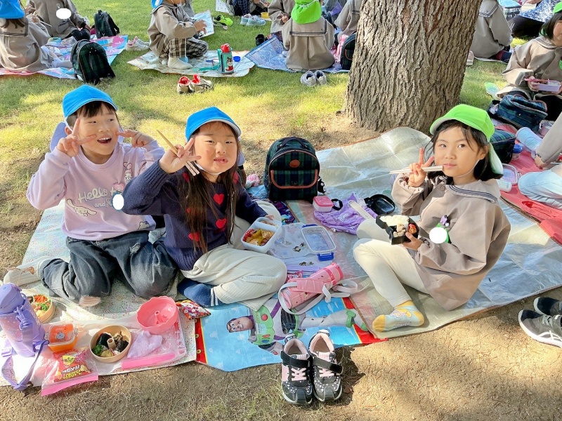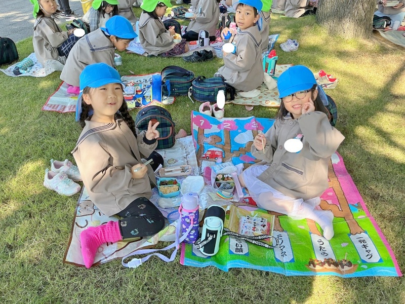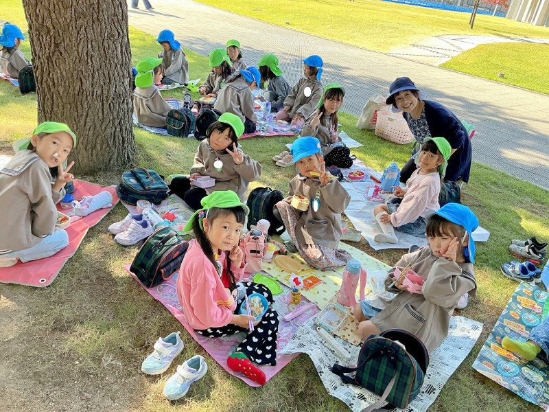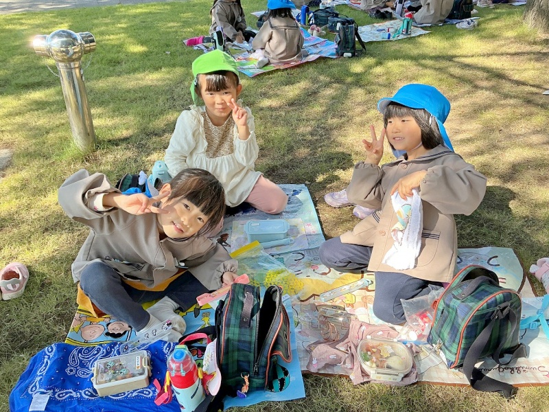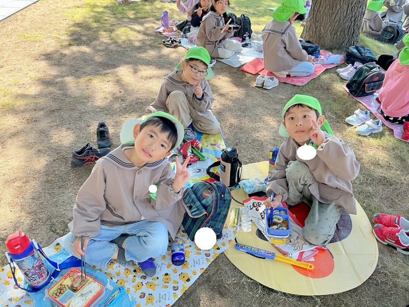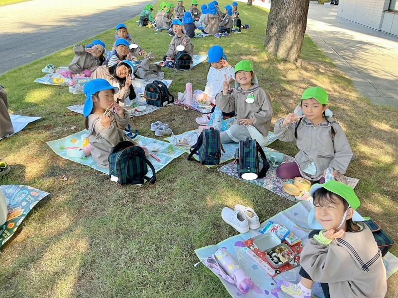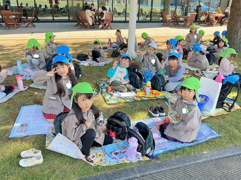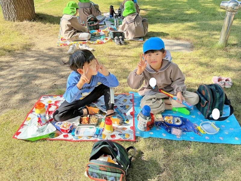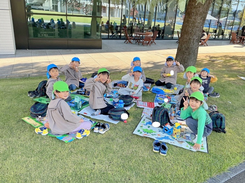 レジャーシートも持参し、大学の芝生の上(子どもたちはサンタさんの木の下と言っていました♡)で、昼食も食べましたよ。