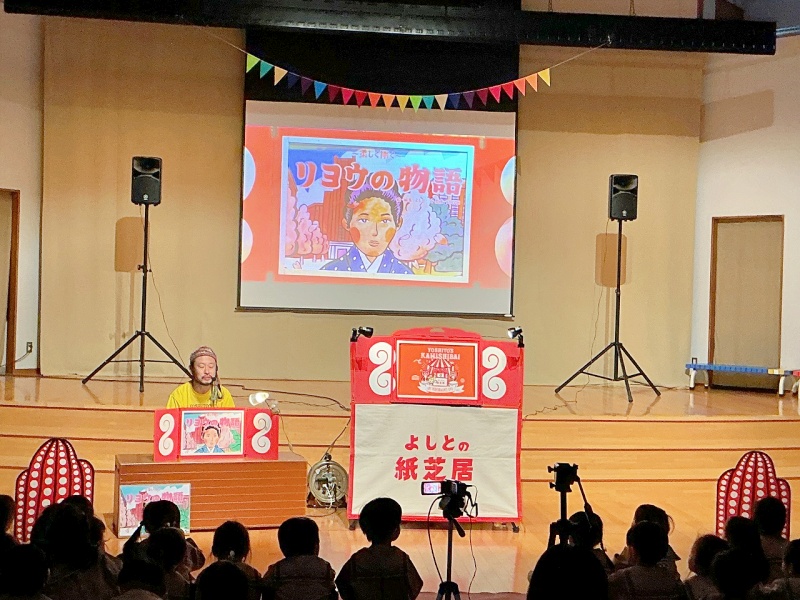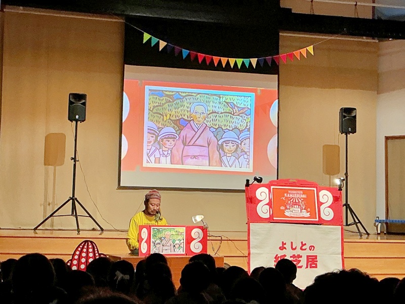 今日は、「アーティストよしと」さんが来て下さり、紙芝居を読んで下さいました。