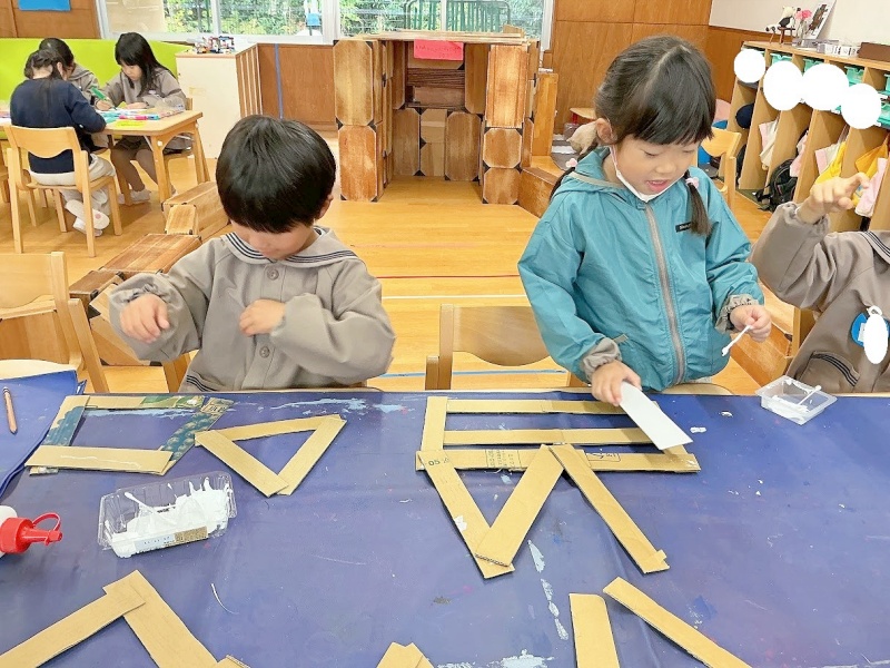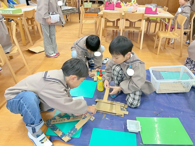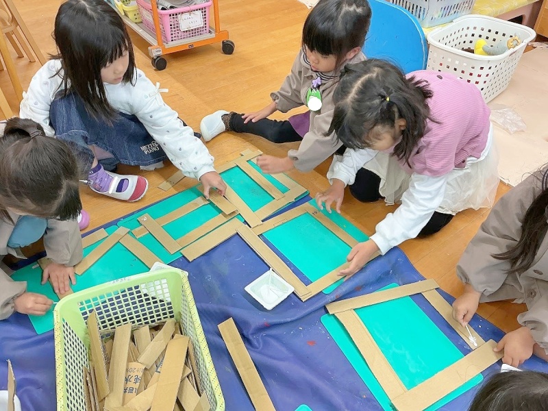 今日は段ボールを組んで枠のようなものをつくりました☆