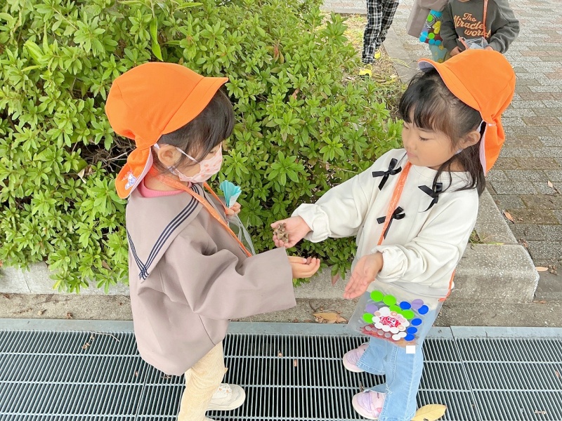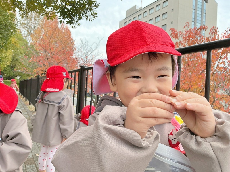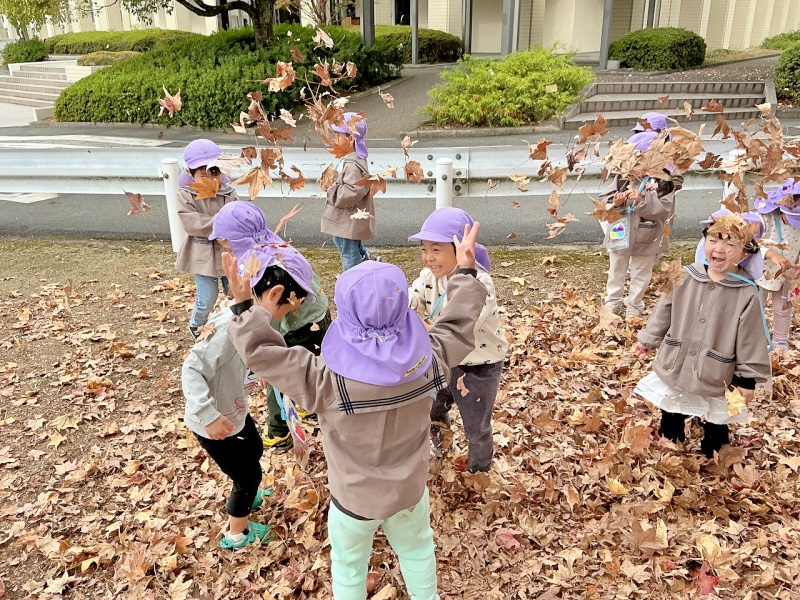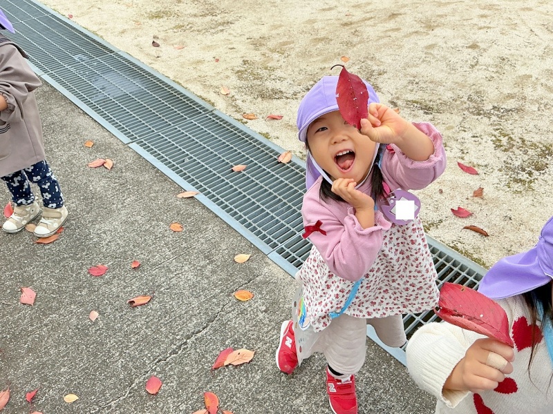 「落ちてる葉っぱはお年寄りなんだよね~」「葉っぱがカサカサする~」「色がちがうね~」などと可愛い呟きもたくさん聞かれました(^.^)