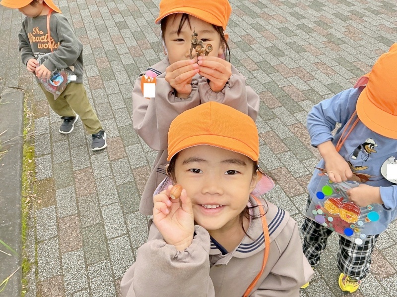 先日はまだ緑色だった葉っぱが赤や黄色に色づいていたり、たくさんあったドングリが少なくなっていたり、色々な変化に気付きながら歩きました。