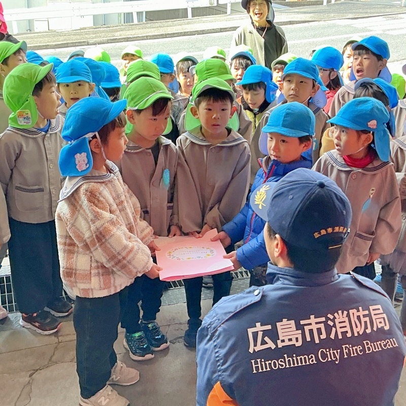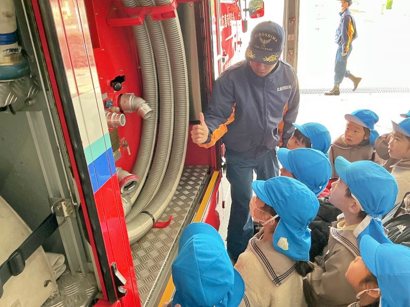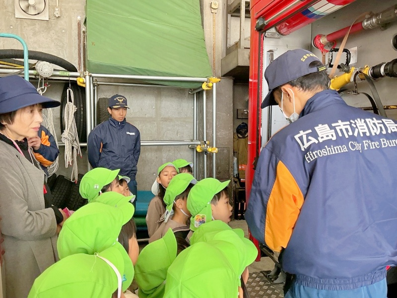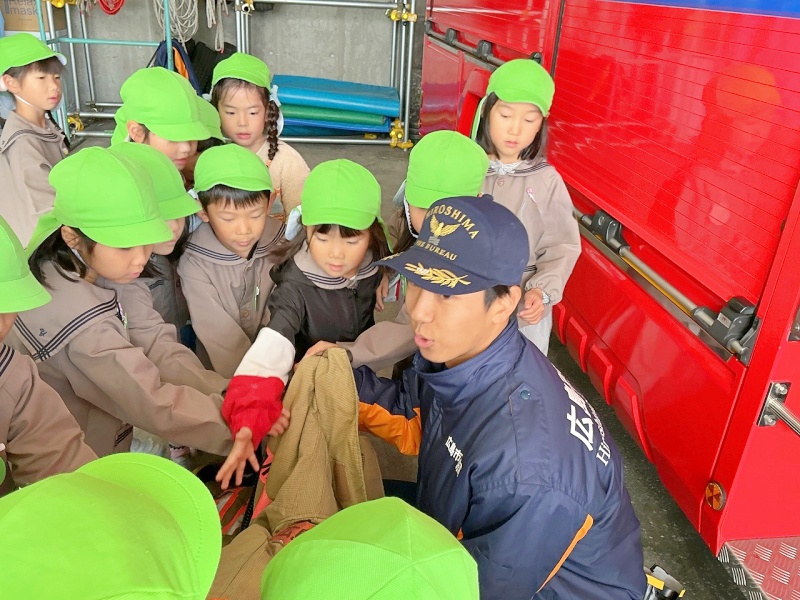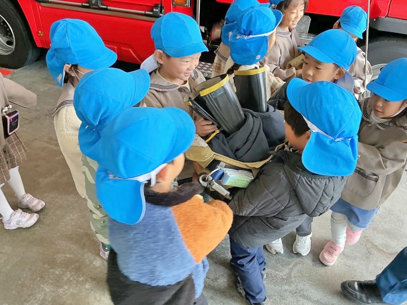 勤労感謝の日にちなみ、年長組が上安消防署を訪問しました。