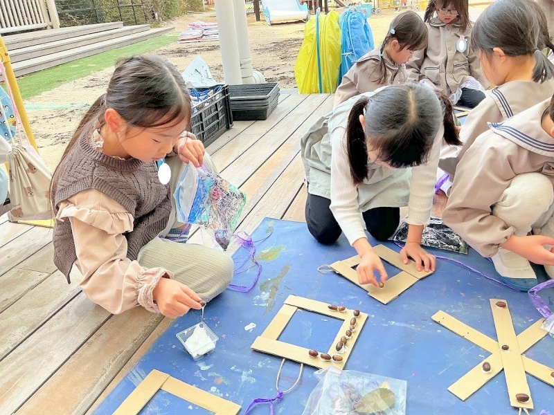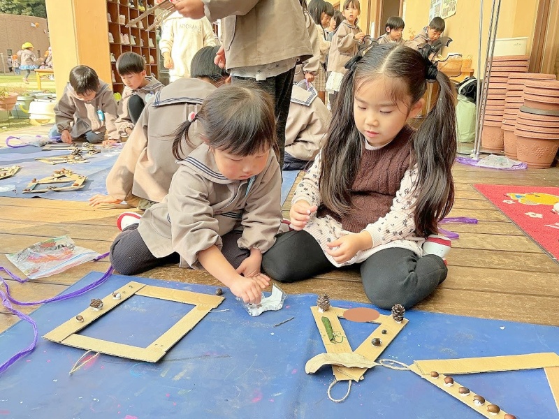 散歩や家の周りで見つけた自然物をみんなで集めていました☆