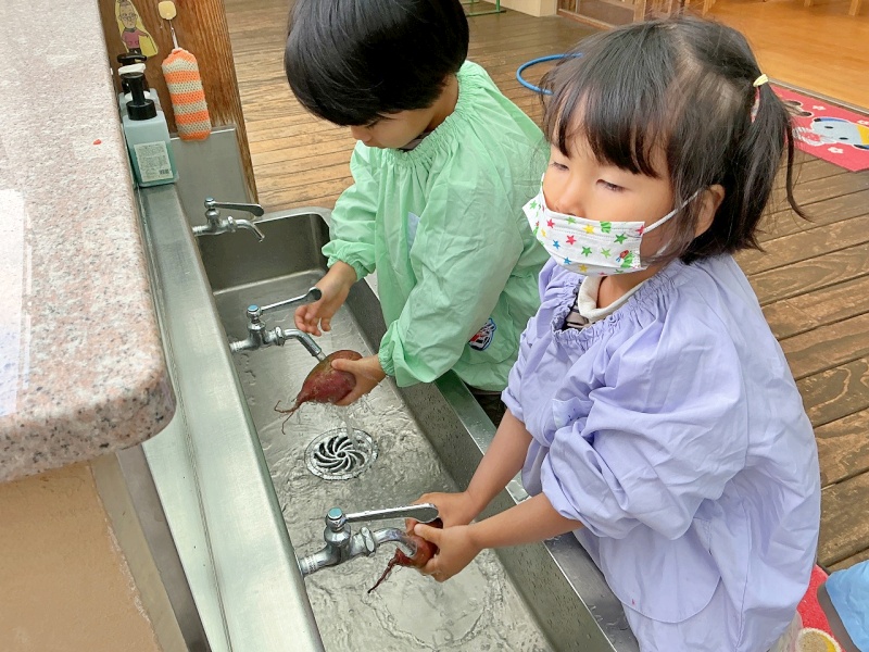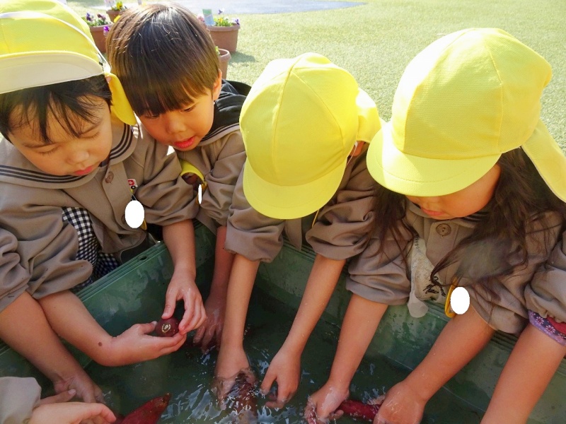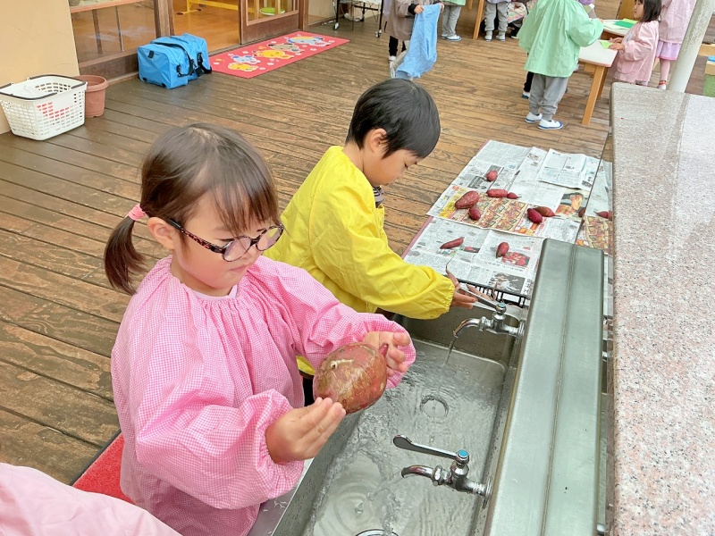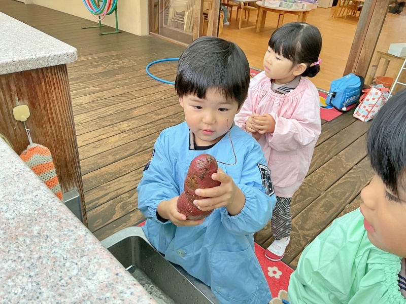 洗った芋は、園長先生やバスの先生方が石焼き芋にしてくださいます♡