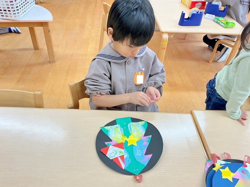 周りに星や自分で折ったサンタさんを飾りました☆