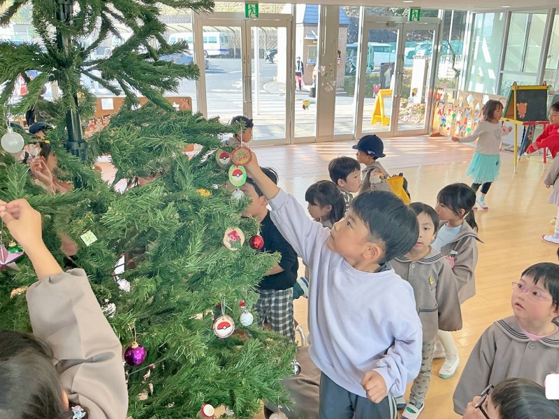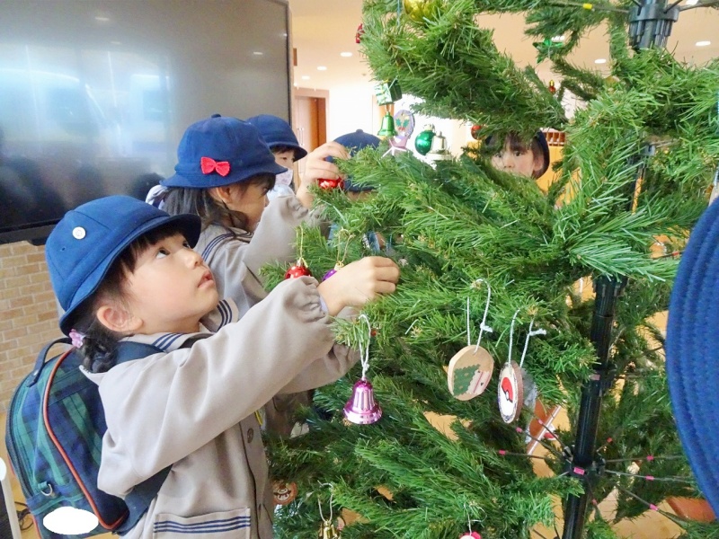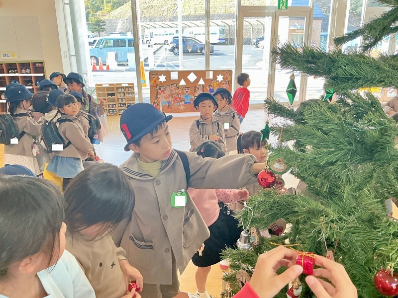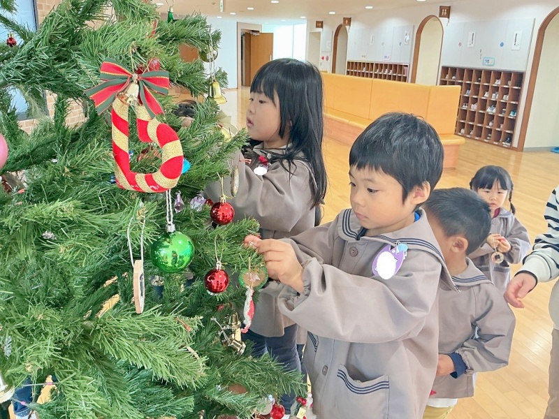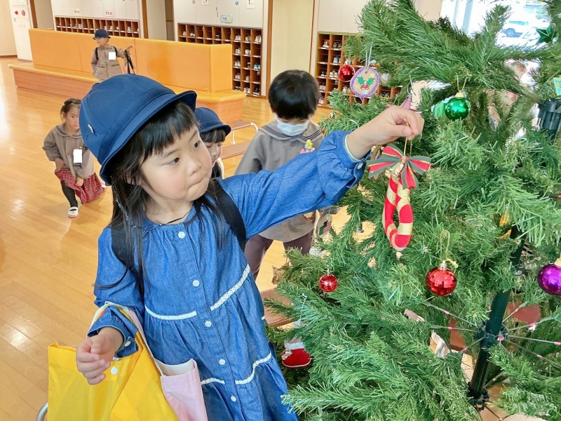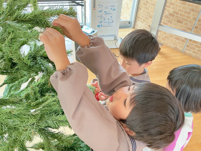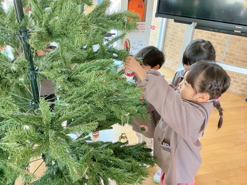 登園すると「ツリーだ!!」と大喜びの子どもたち。