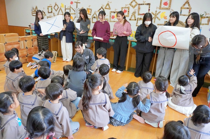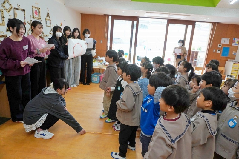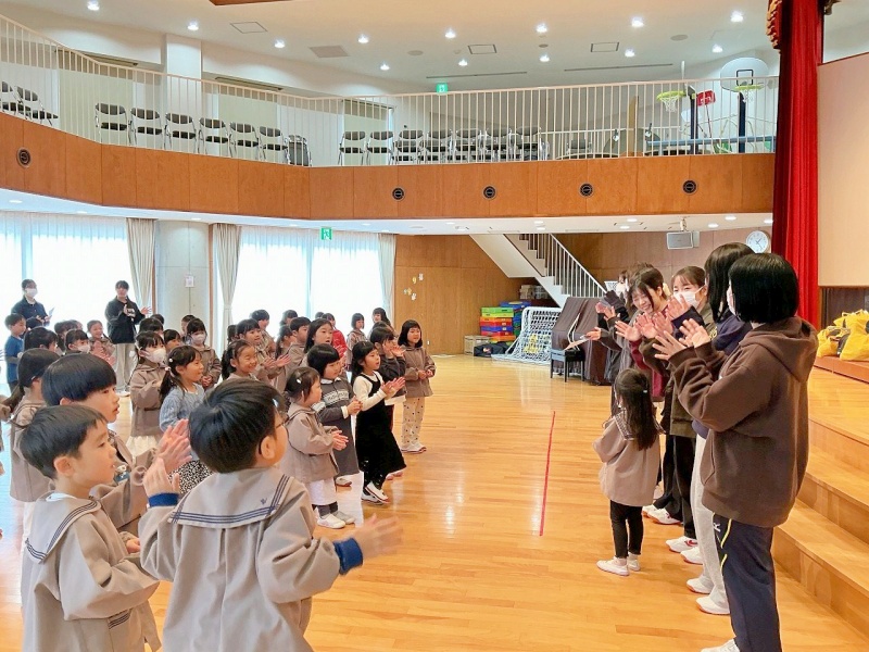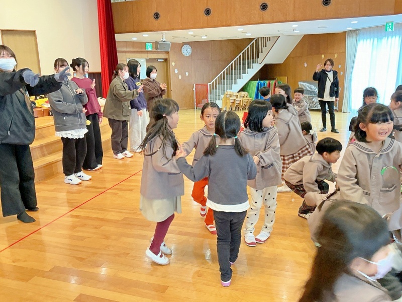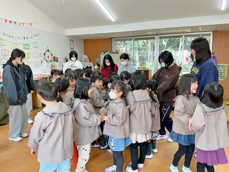 今日は、管理栄養学科と生活デザイン学科の学生さんが、授業の一環で年長児にお楽しみをしてくださいました。
