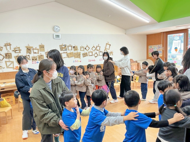 学生さんたちが”子どもたちのために”と考えてくださり、「〇✕ゲーム」や「貨物列車」、「動物園に行こうよ!」などをしました。