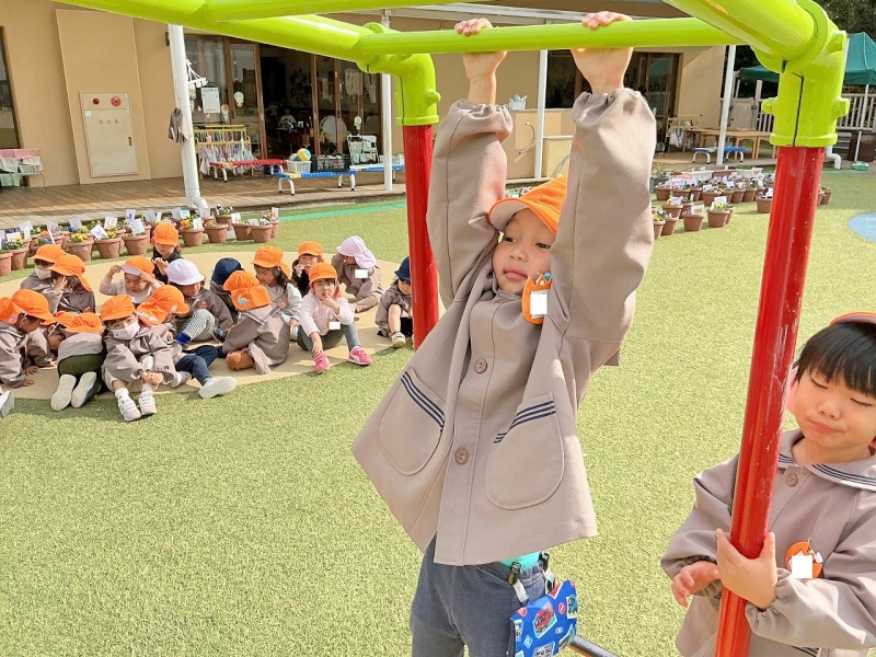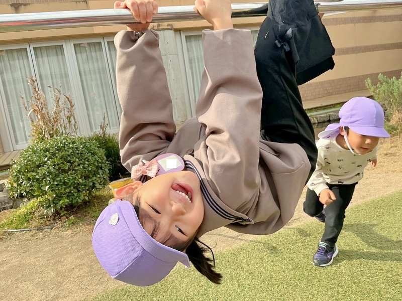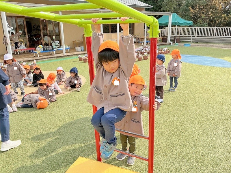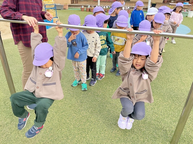 年少組では雲梯や鉄棒、登り棒などの固定遊具に興味を持ち始めたので、「ウキウキチケット第2弾」を始めました♪