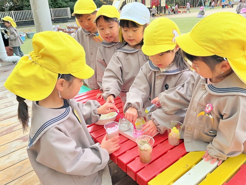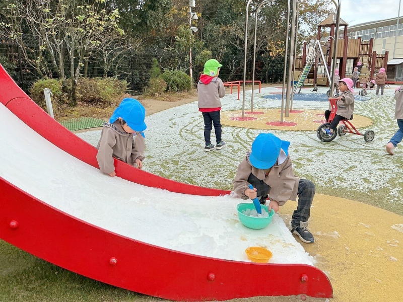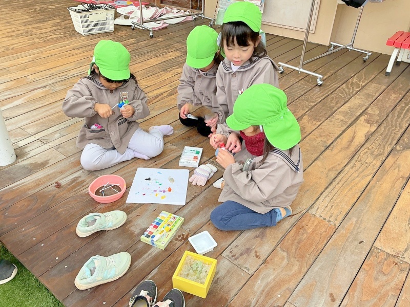 雪遊びから絵の具遊びに広がっているクラスもありました(^^♪