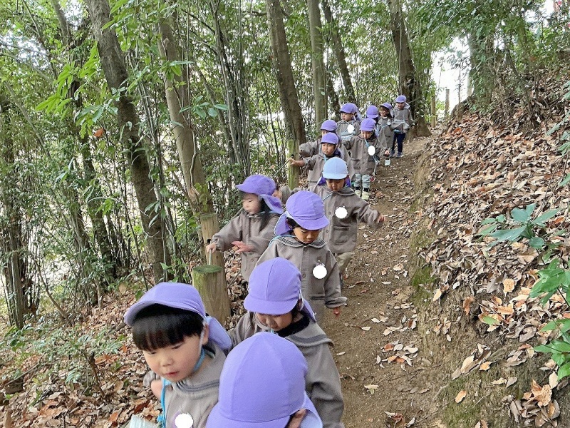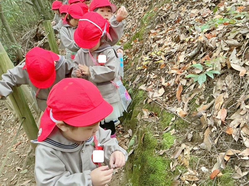 11月に散歩した時とは違い、落ち葉が枯れていたり、少し肌寒かったりし、冬の訪れを感じた子どもたちです♡