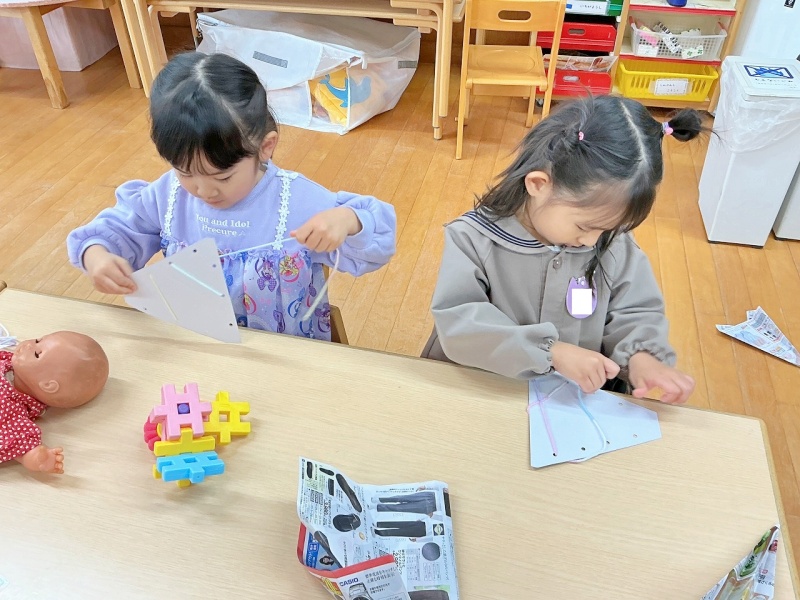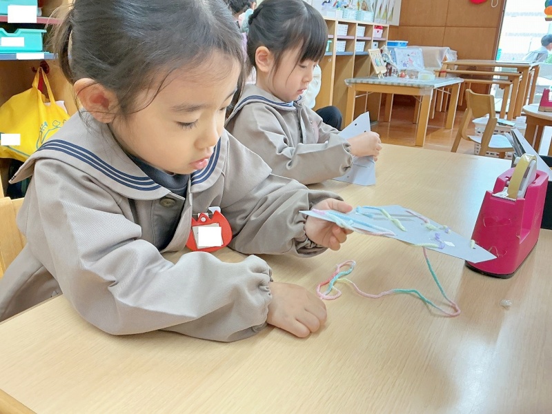 年少組で楽しんでいる「わたしのワンピース」作り!